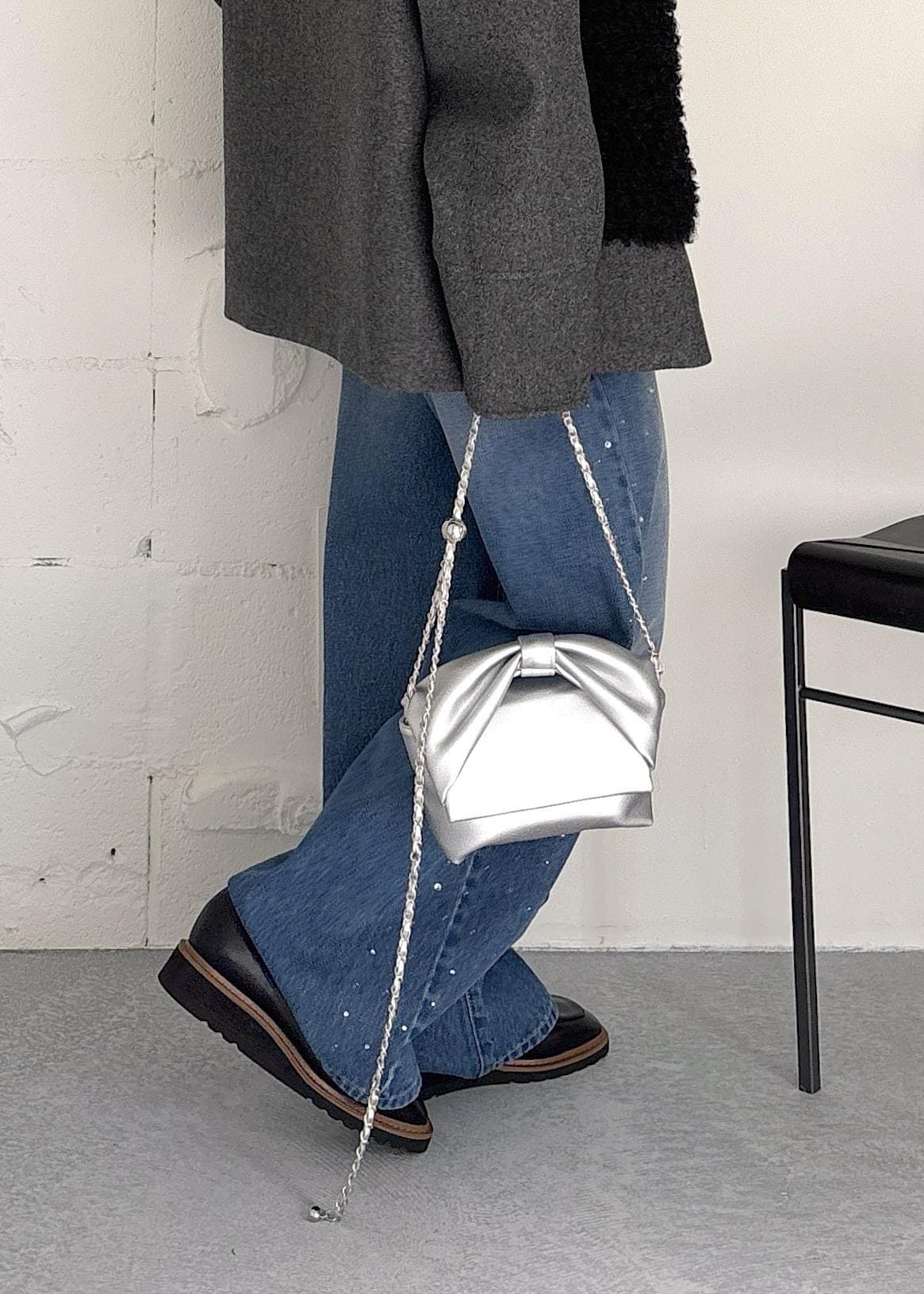 NEW!VISリボンハンドルチェーンショルダーバッグ/2WAYシルバー / F¥5,929レビュー普段使いからフォーマルまで使えるリボンパック♪チェーンは長さ調整が可能で、ショルダーから手持ちまでコーデによって合わせ方を変えられるデザイン。更にリボン部分も持ち手としてクラッチ風に合わせたりと、とてめ優秀なパックです◎合皮ですが柔らかな素材で持ちやすさもポイント。小ぶりなお財布、ポーチが入るサイズ感です。
