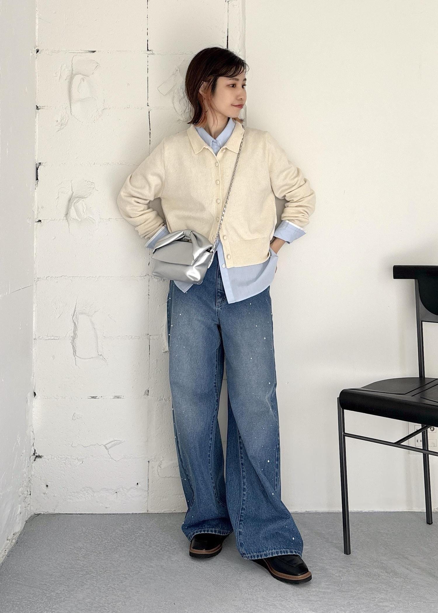 VISビジューデニムパンツブルー / M¥7,909レビューキラキラビジューが目を惹く大人可愛いデニム♪大きさの異なったビジューが正面サイドにあしらっている、カジュアルだけど女性らしい印象見えするデザイン。シルエットは広がり過ぎないストレートラインなので、コーディネートもバランスまとまります。厚過ぎず、薄過ぎずと通年使いやすい素材です◎サンプルの為Mサイズ着用、全体的にゆったりめ、着丈は足首くらいの長さでした。