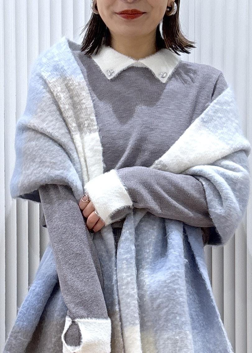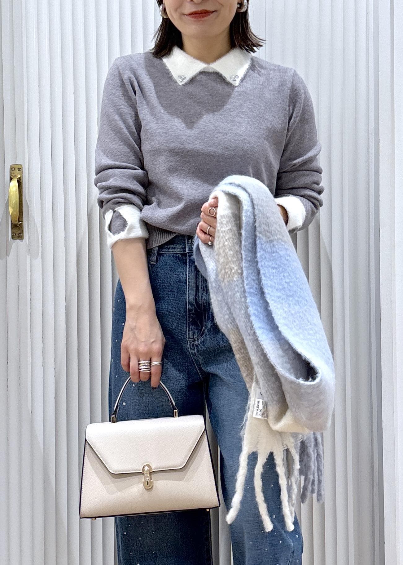 VISビジュー付きシャギーカラーニットトップスライトグレー / F¥5,489レビュー襟のビジューがアクセントの今年らしい襟付きニットトップスです。