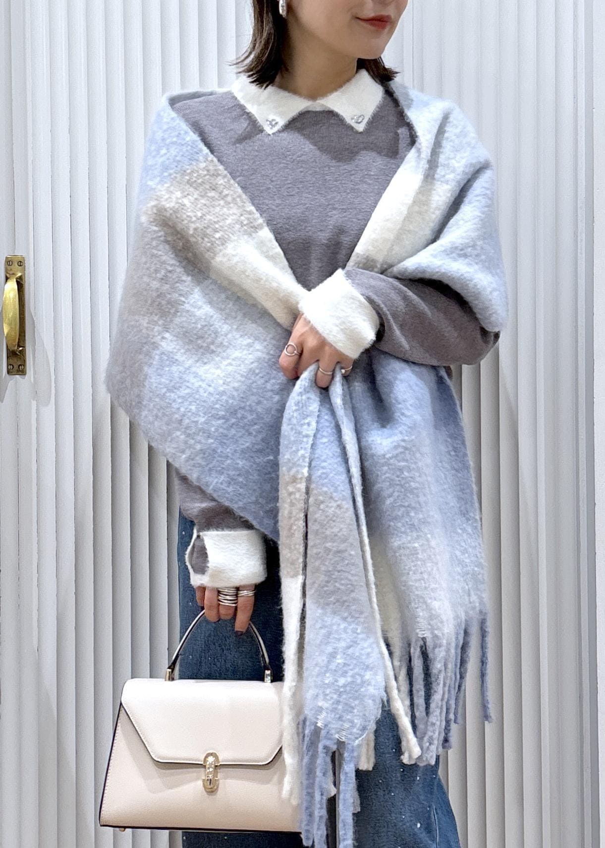 合わせやすい柔らかなチェック柄にボリュームが可愛い冬のマストアイテム。チクチク感が無いため、肌が弱い方にもお勧めです。 -
