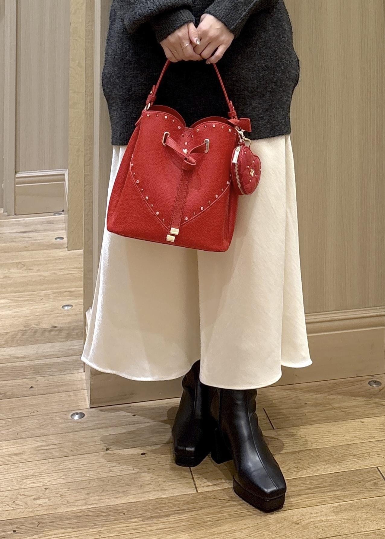 NEW!VISラインストーン&スタッズハートカットバッグレッド / F¥7,909レビュー人気のハートバッグに