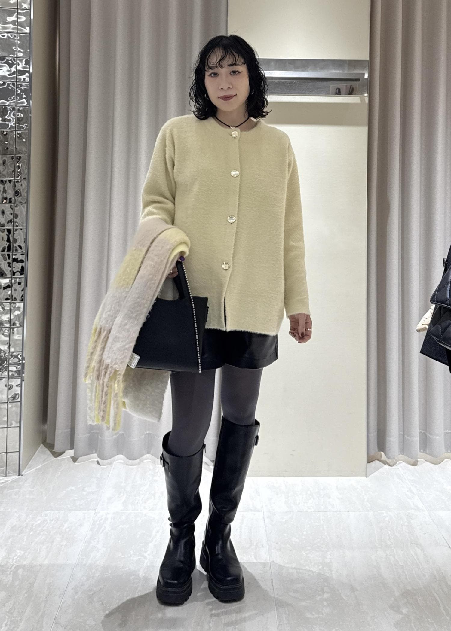 キレイめな印象のあるカーディガンにレザーのパンツでパキッと感をプラスしました!