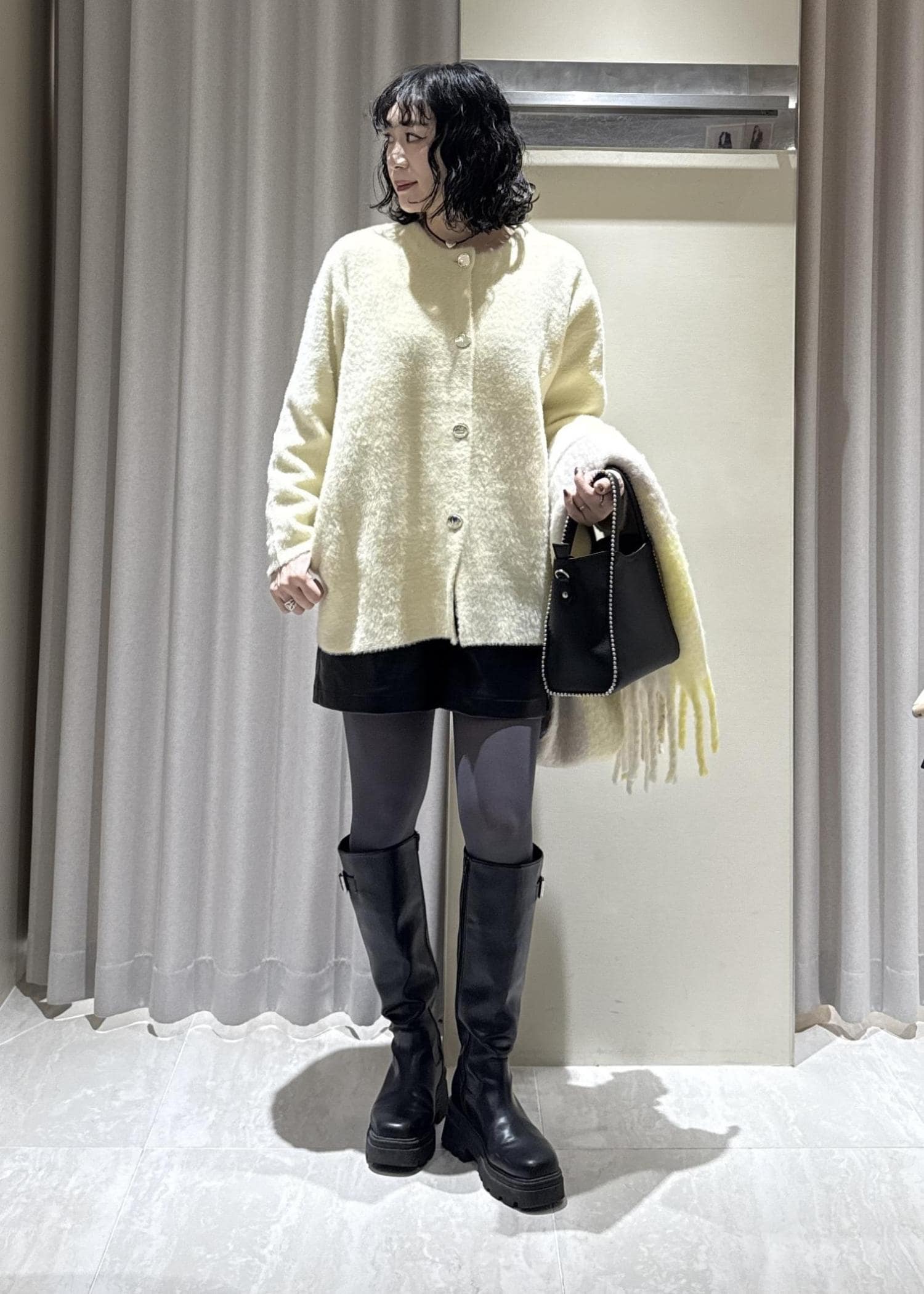 VIS接結メタルボタンミニフェザーニットコートイエロー / F¥9,999レビューふわっと軽くて暖かい!