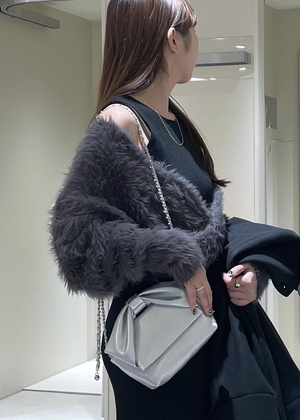 リボンハンドルデザインが、シンプルながらも可愛く華やかな雰囲気を出してくれます。ショルダーは長さ調節可能です◎ -