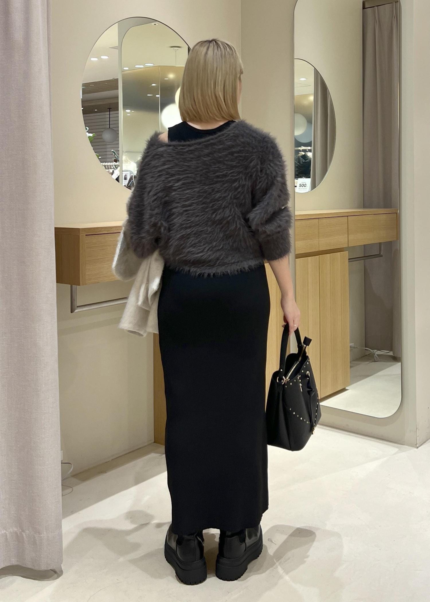 ふわっとしたシャギーのプルオーバーなので簡単にオフショルもお楽しみいただけます!