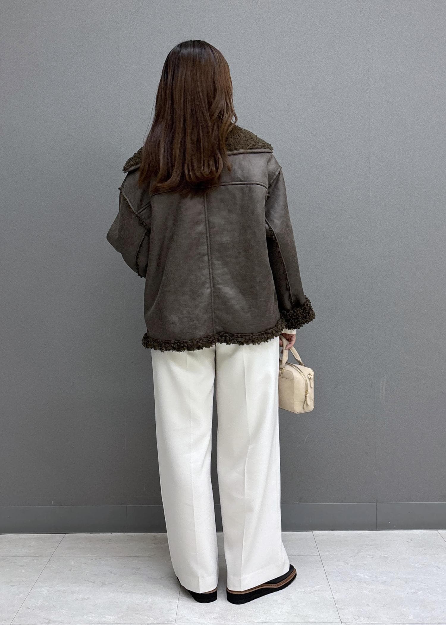 VISフェイクムートンジャケットダークブラウン / F¥5,632レビュー160㎝だとヒップにかかる長さです。腕まわりもゆったりしていて重ね着も楽ちん!見た目以上に軽くて、着心地抜群です!裏地がボアなので暖かく、この冬重宝すること間違いなし◎