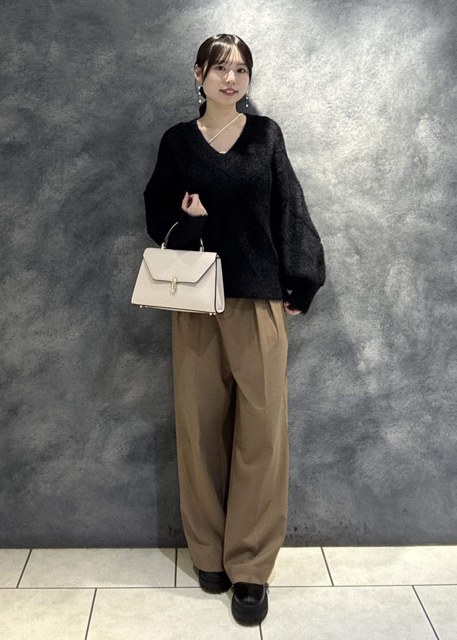 綺麗見えしつつ、程よいゆとりがあるので厚めのニットも着て頂けます◎ -