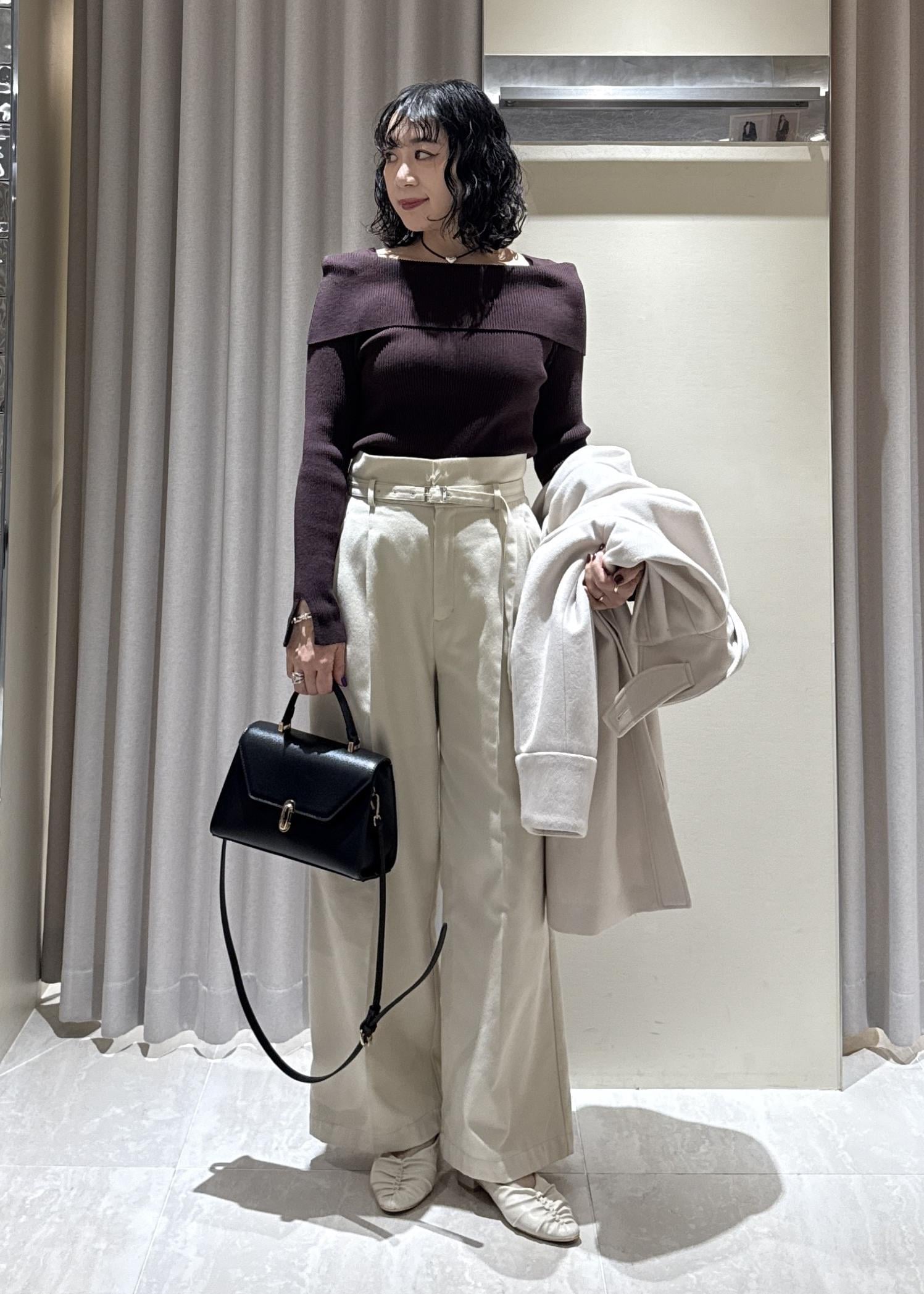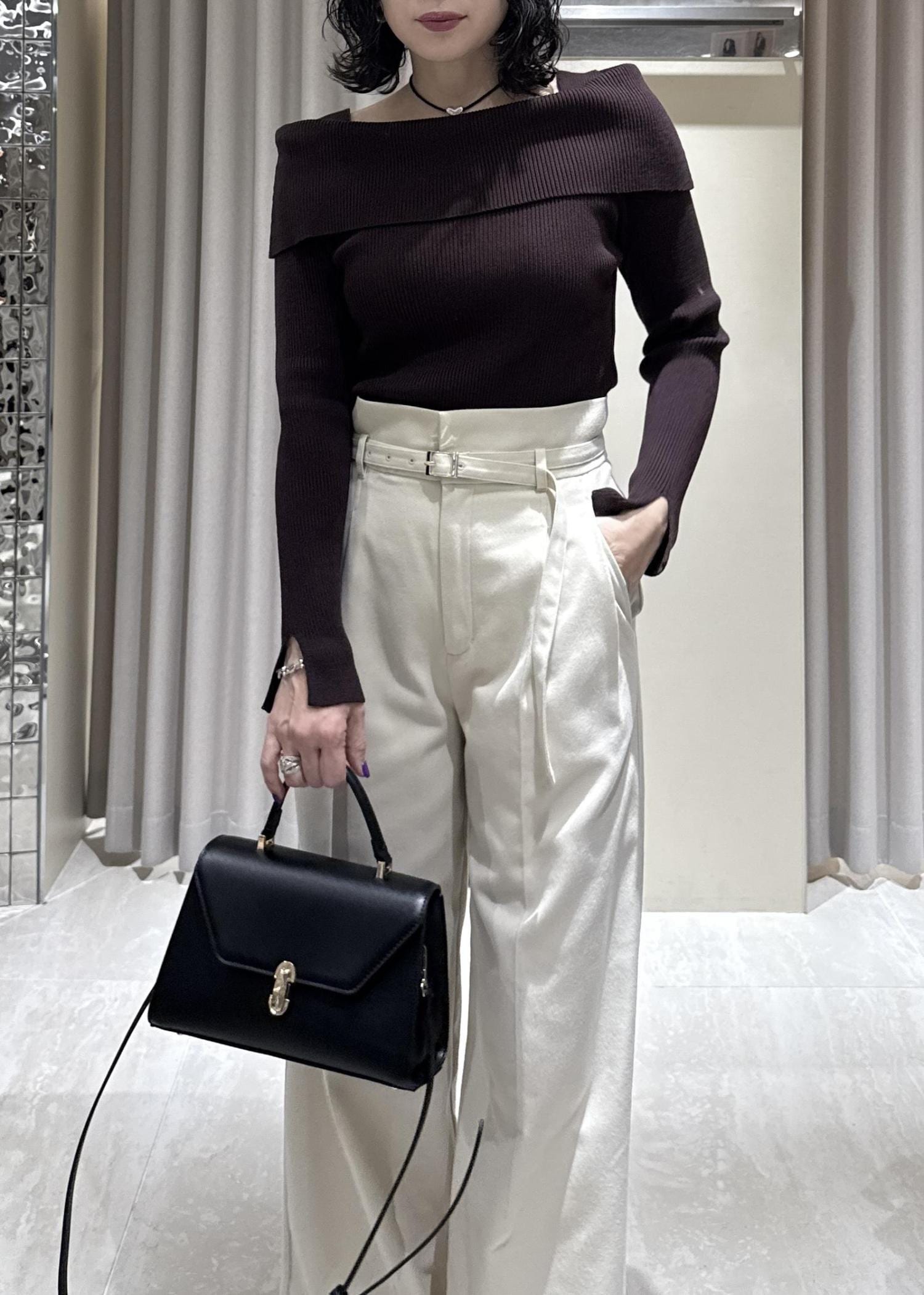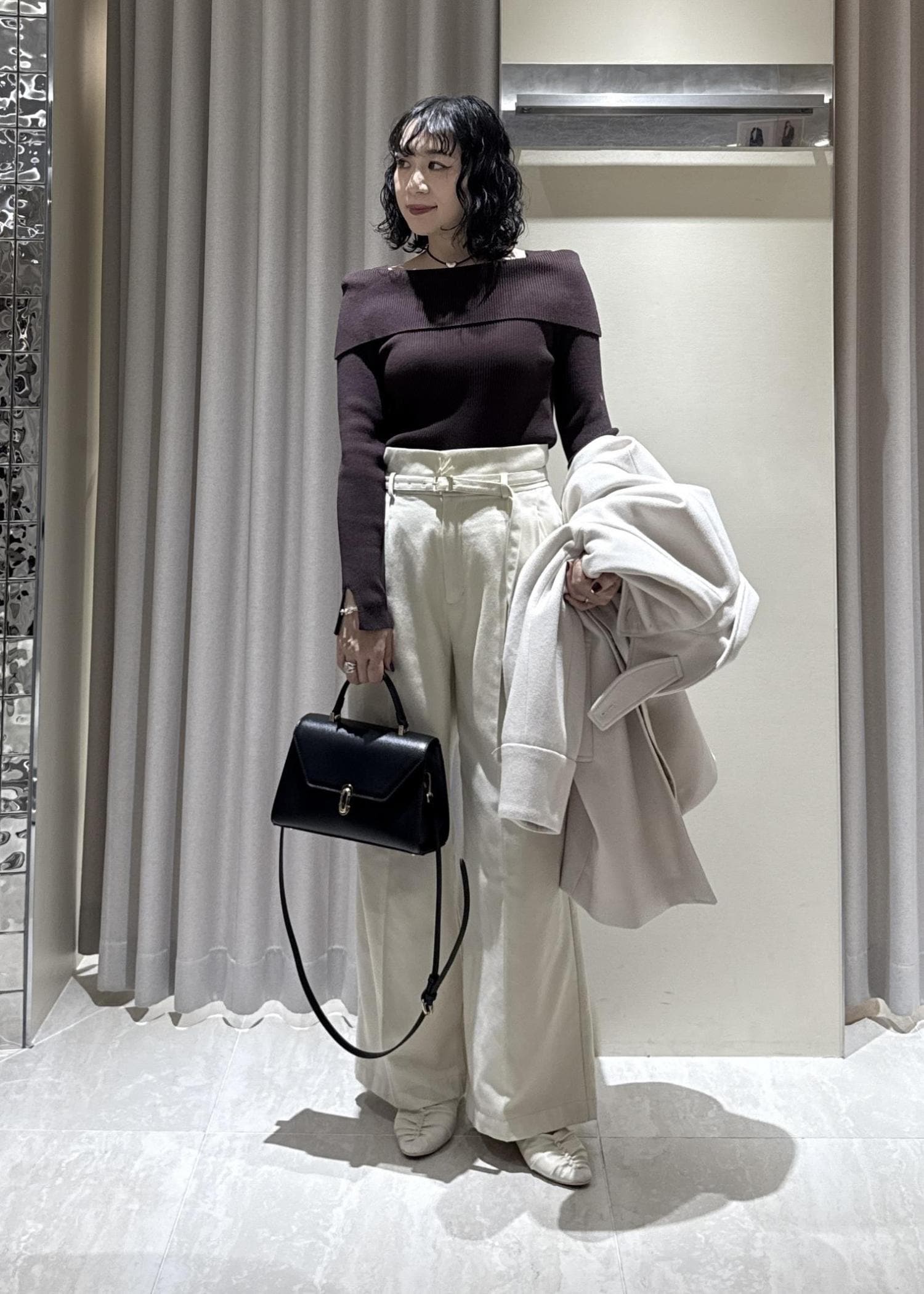 人気のオフショル風ニットに追加カラーでブラウンが入りました♪