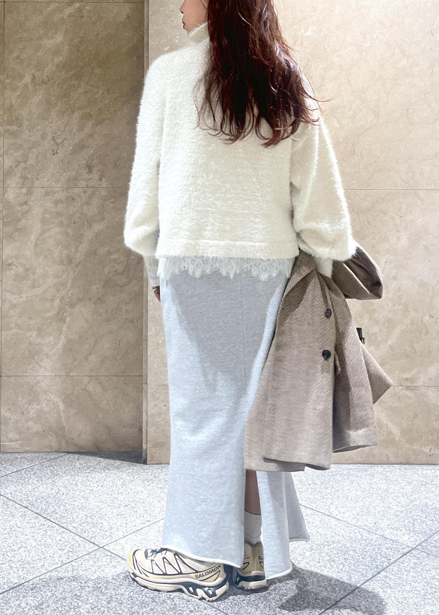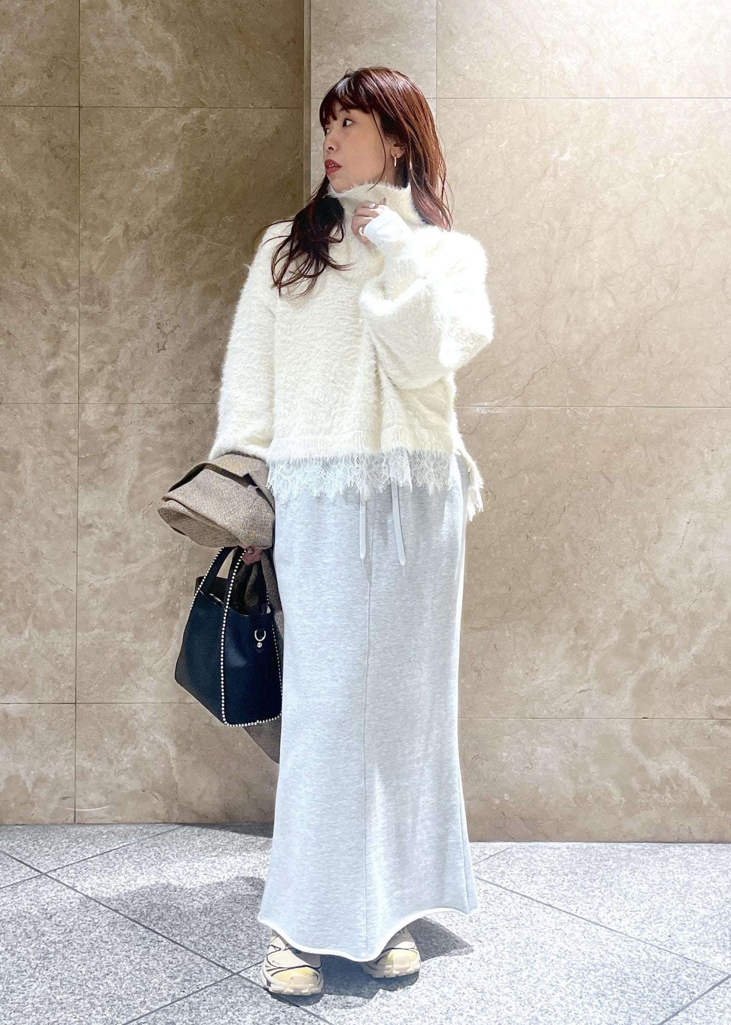 レース部分も繊細で、かつニットと掛け合わさることで軽やかな印象に見せてくれます。