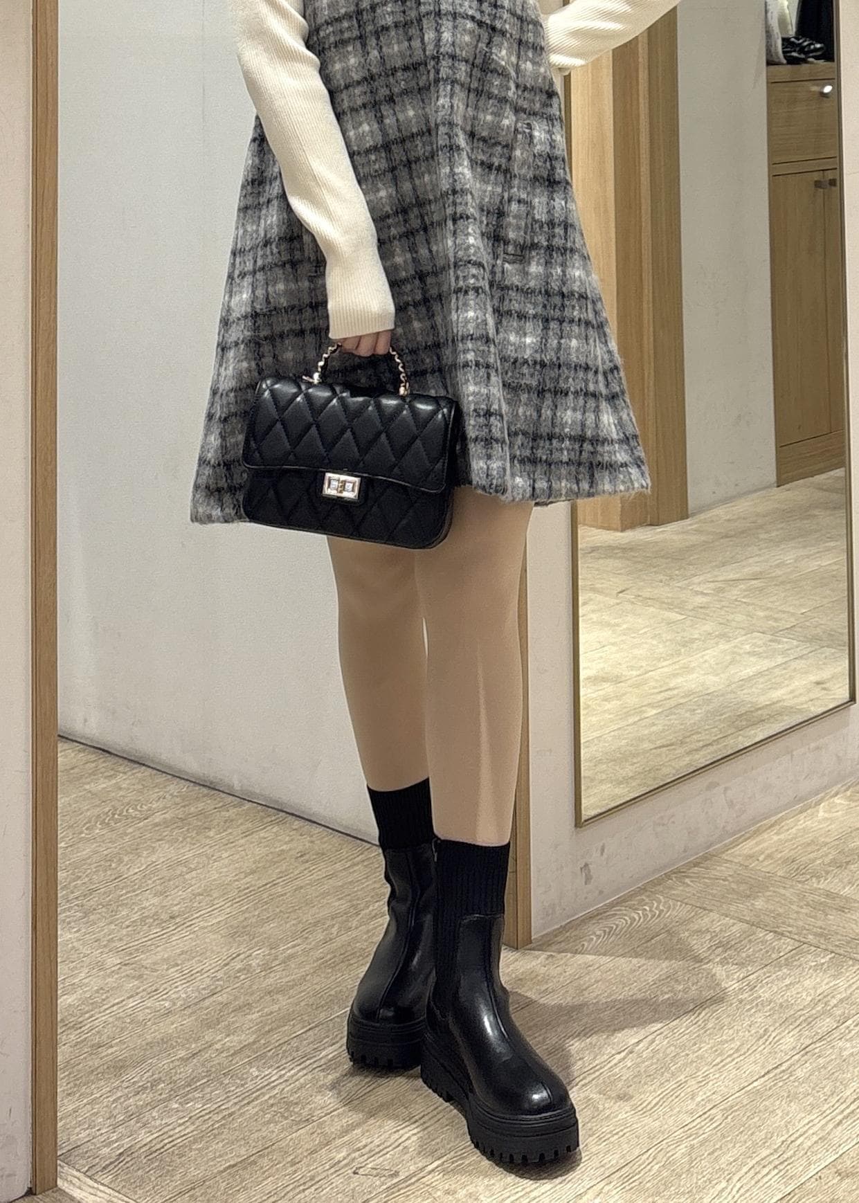 台形寄りのしっかりしたフォルムが全体のバランスを上品にまとめてくれます。 -