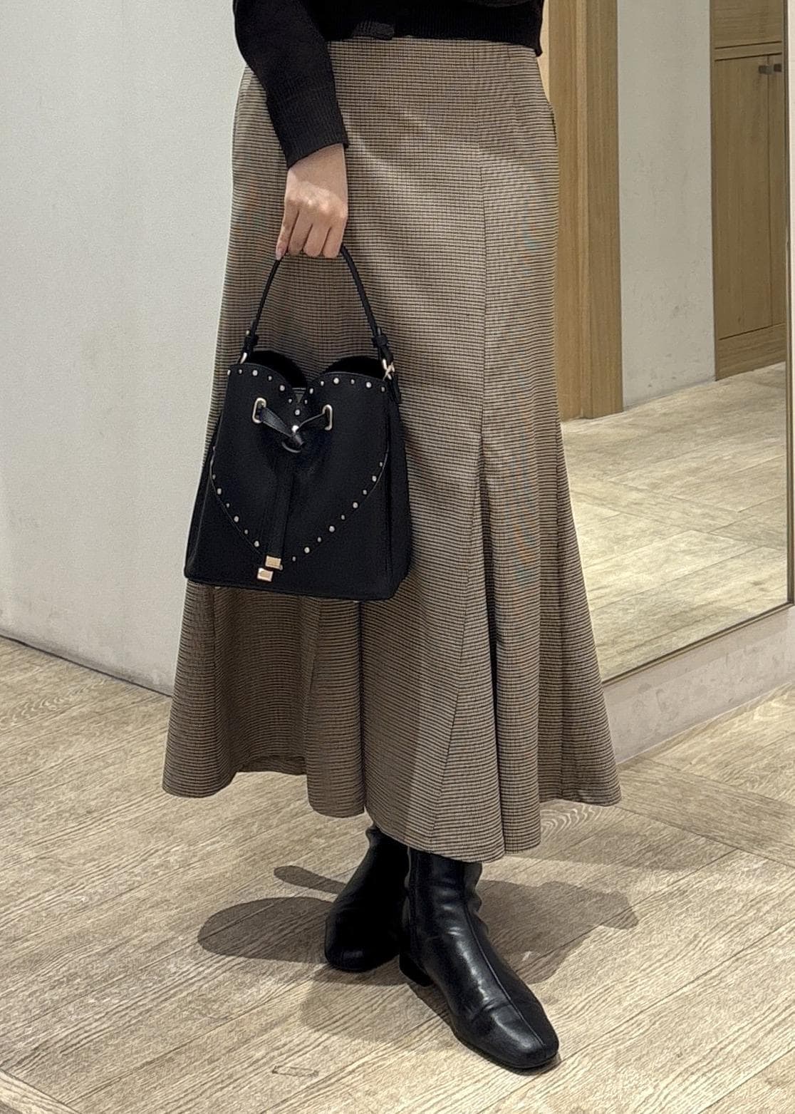 腰回りをすっきり見せ、裾に向かって広がるラインがスタイルアップにつながります。