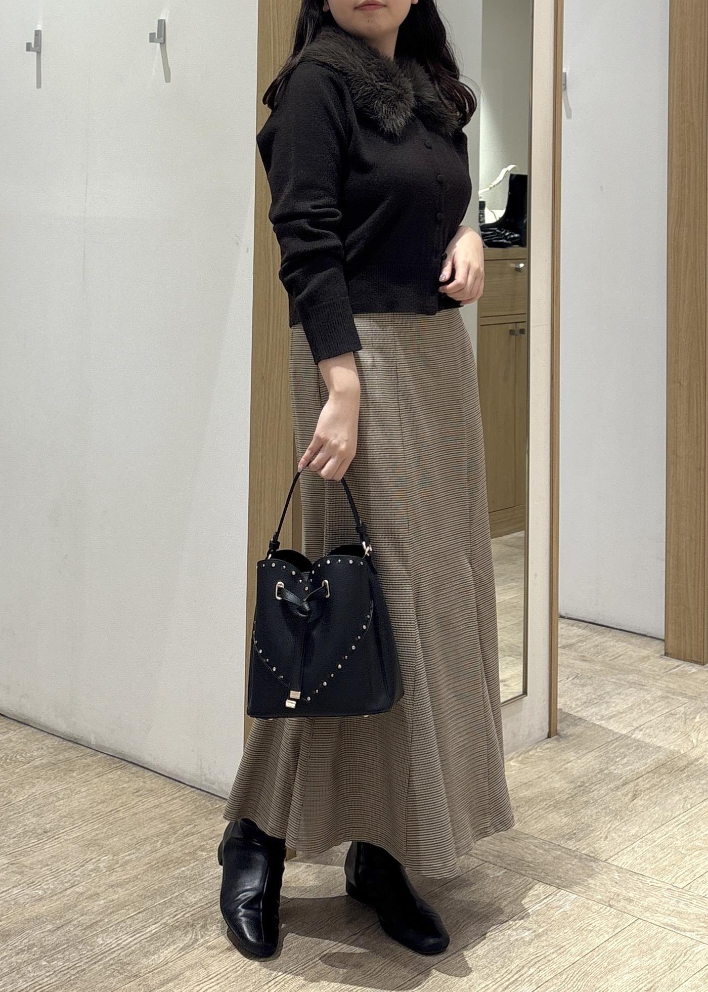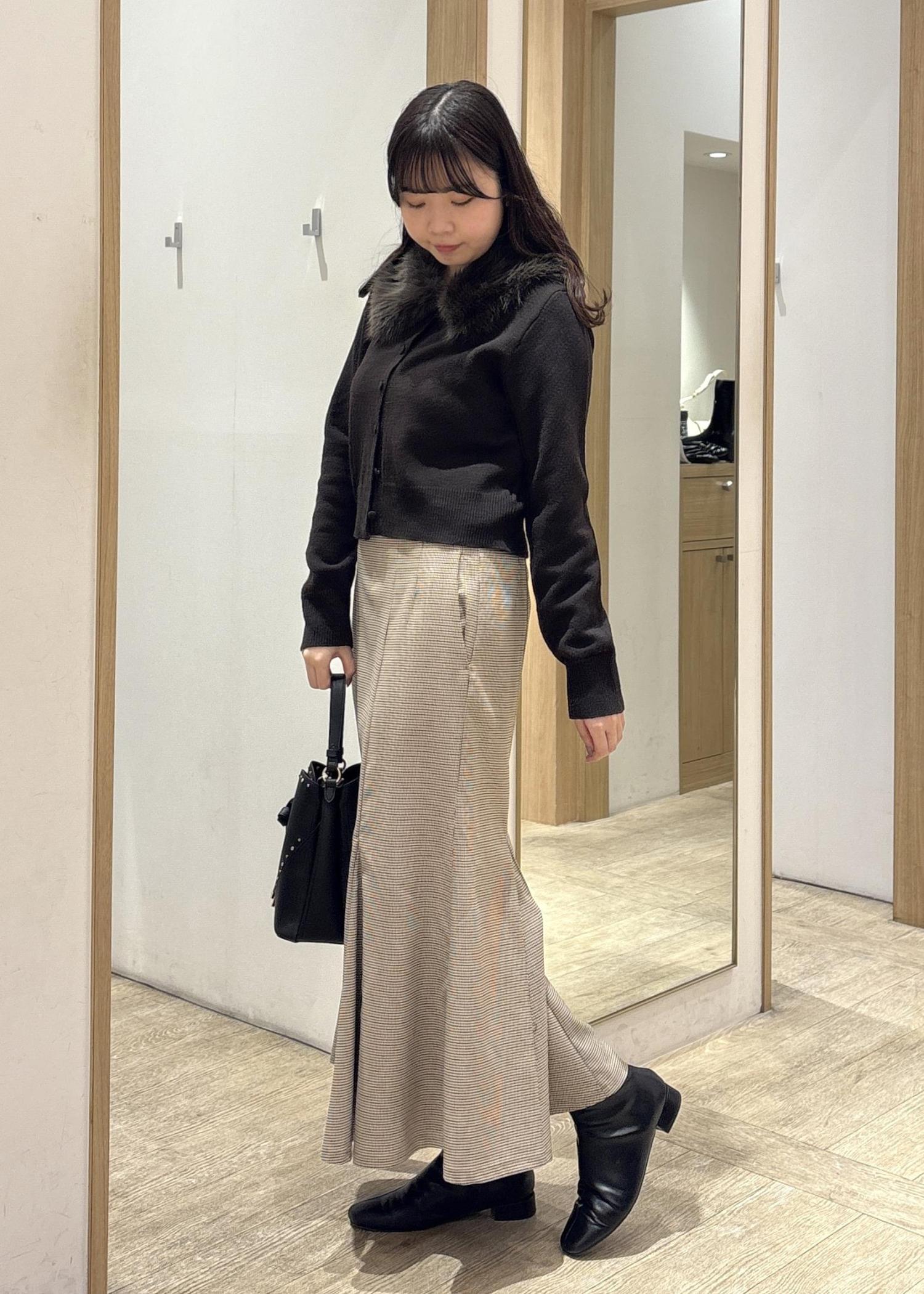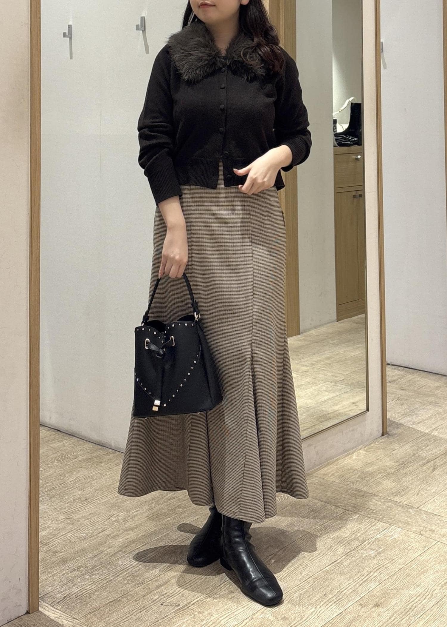 VIS衿ファー取り外しカーディガンダークブラウン / F¥6,589レビュー襟ファーがあることで、首まわりに華やかさが出て“冬スタイルらしい”あたたかみと季節感がプラス♪