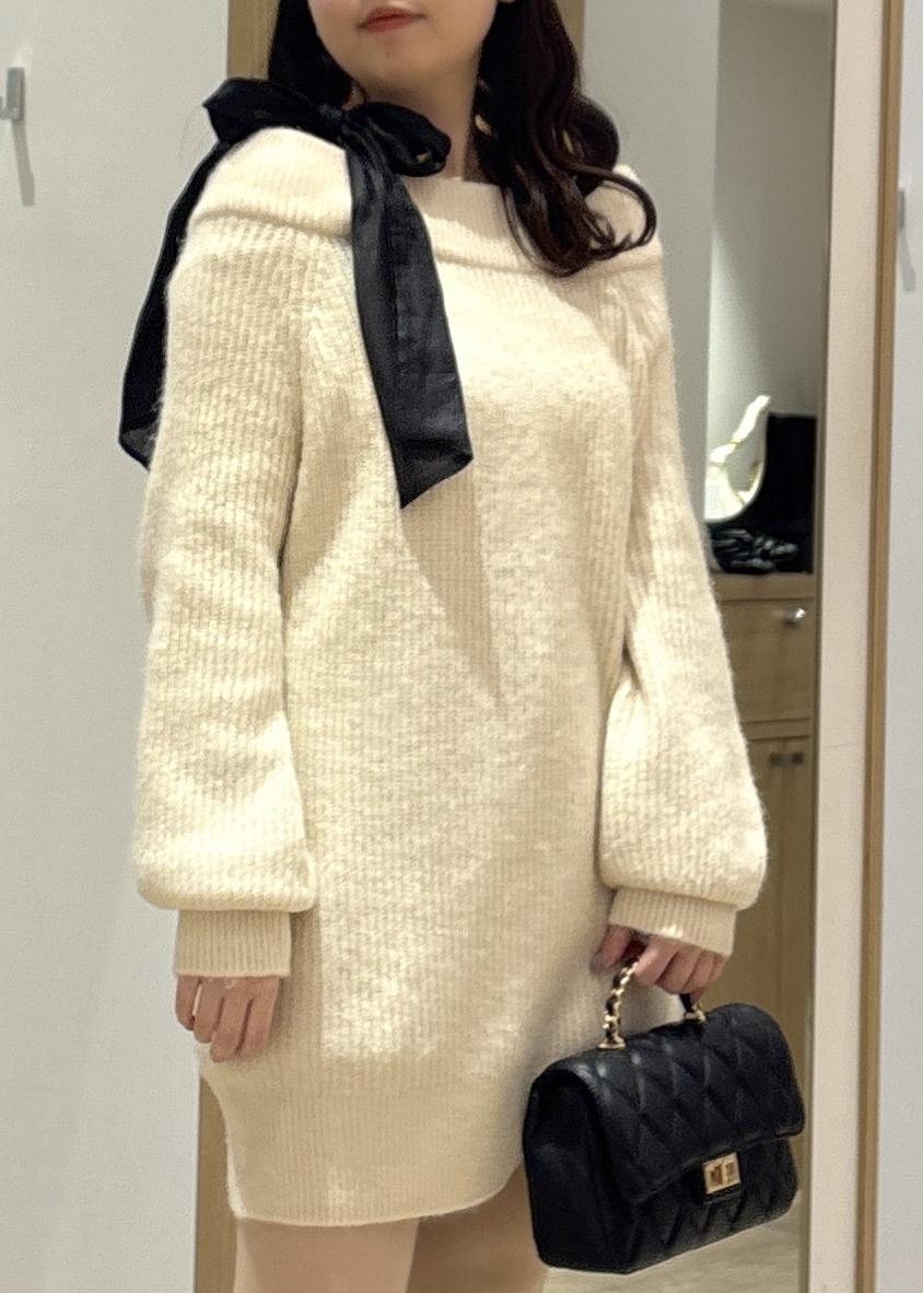 VIS肩リボンミニ丈ニットワンピース/2WAYキナリ / F¥7,909レビュー肩のリボンが目を引くニットワンピースは、見た目の可愛さだけじゃなく着心地の良さも魅力です♪