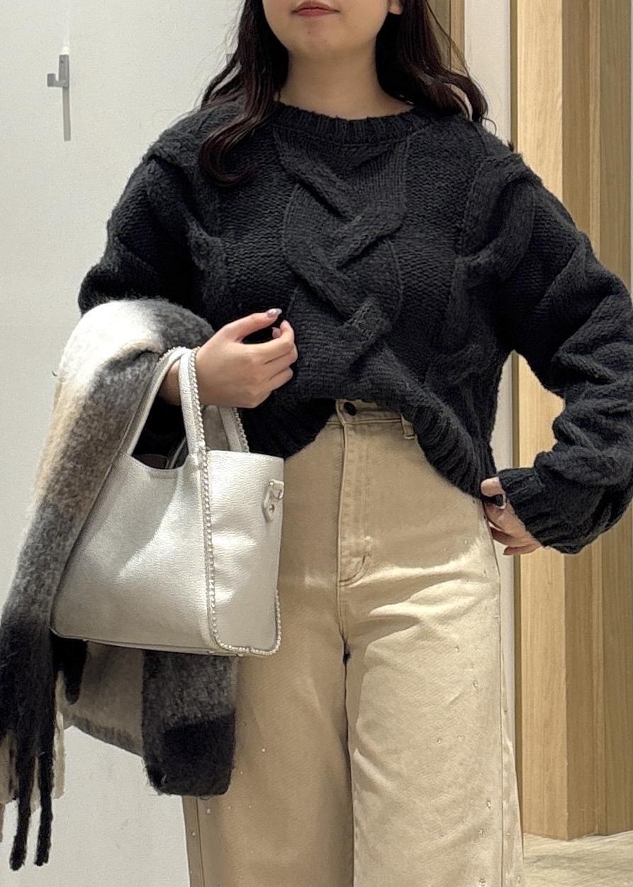 VISケーブルコンパクトニットチャコール / F¥5,929レビュー丈は短すぎないベーシック丈でインもしやすく、アウトで着てもバランスが崩れにくいです!