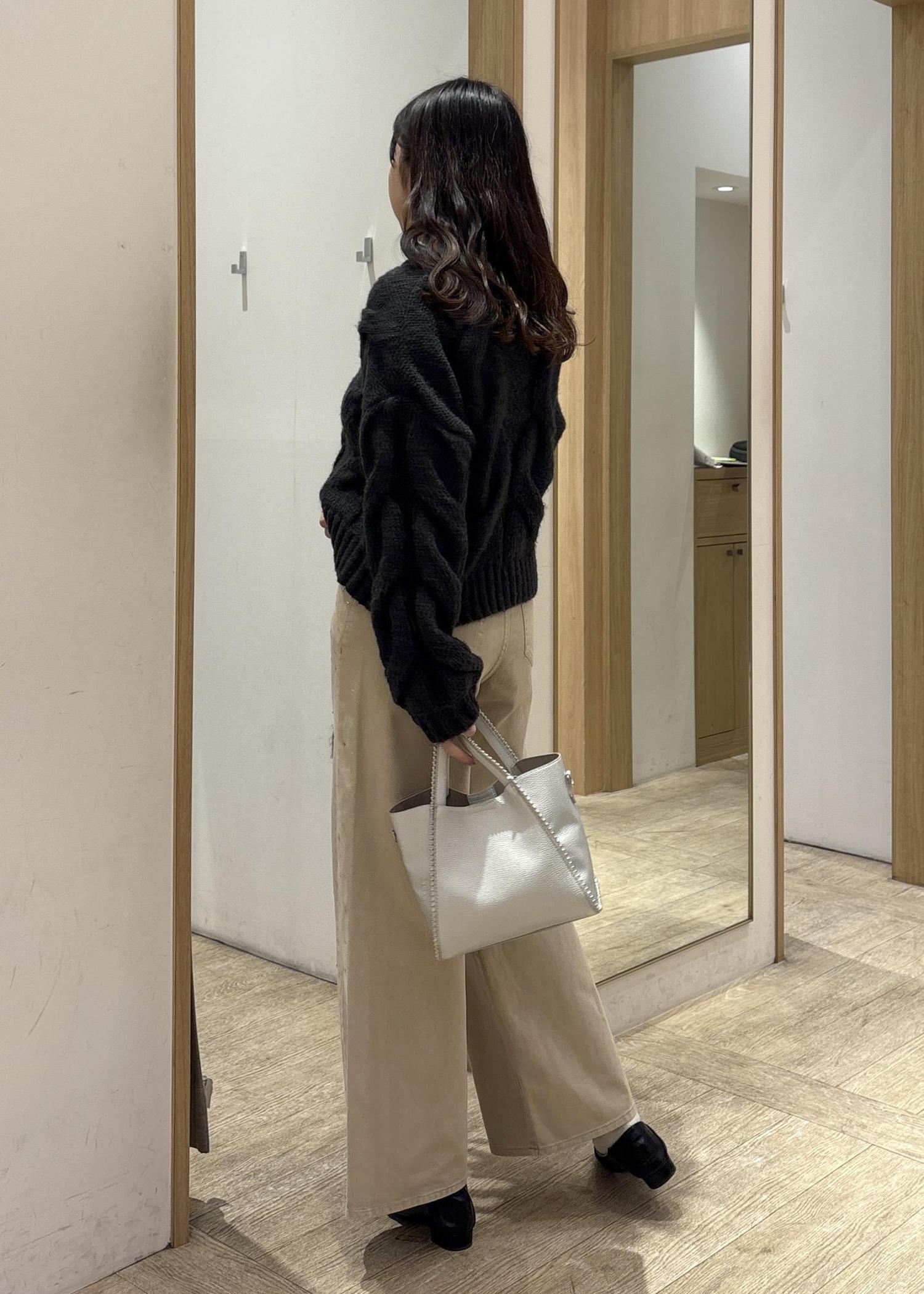 ハイウエストのボトムを合わせると自然にスタイルアップできて、タイトスカート合わせだと一気に女性らしい印象に、ワイドパンツだとこなれた抜け感が出て気分で雰囲気を変えられます♪ -