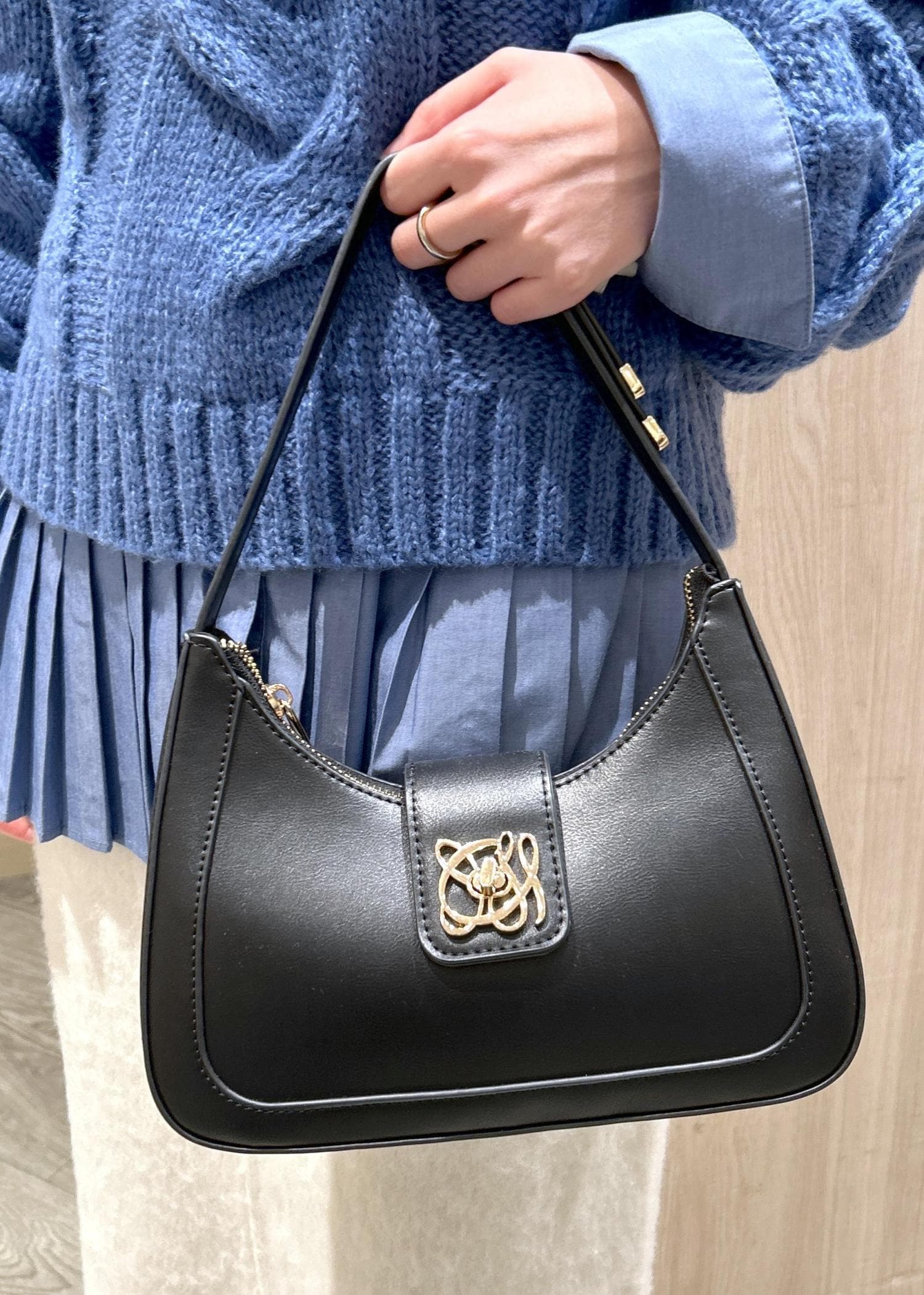VIS【180℃美人見え】ハンドルリボンワンショルダーバッグブラック / F¥5,929レビュー長財布が入る大きさです。