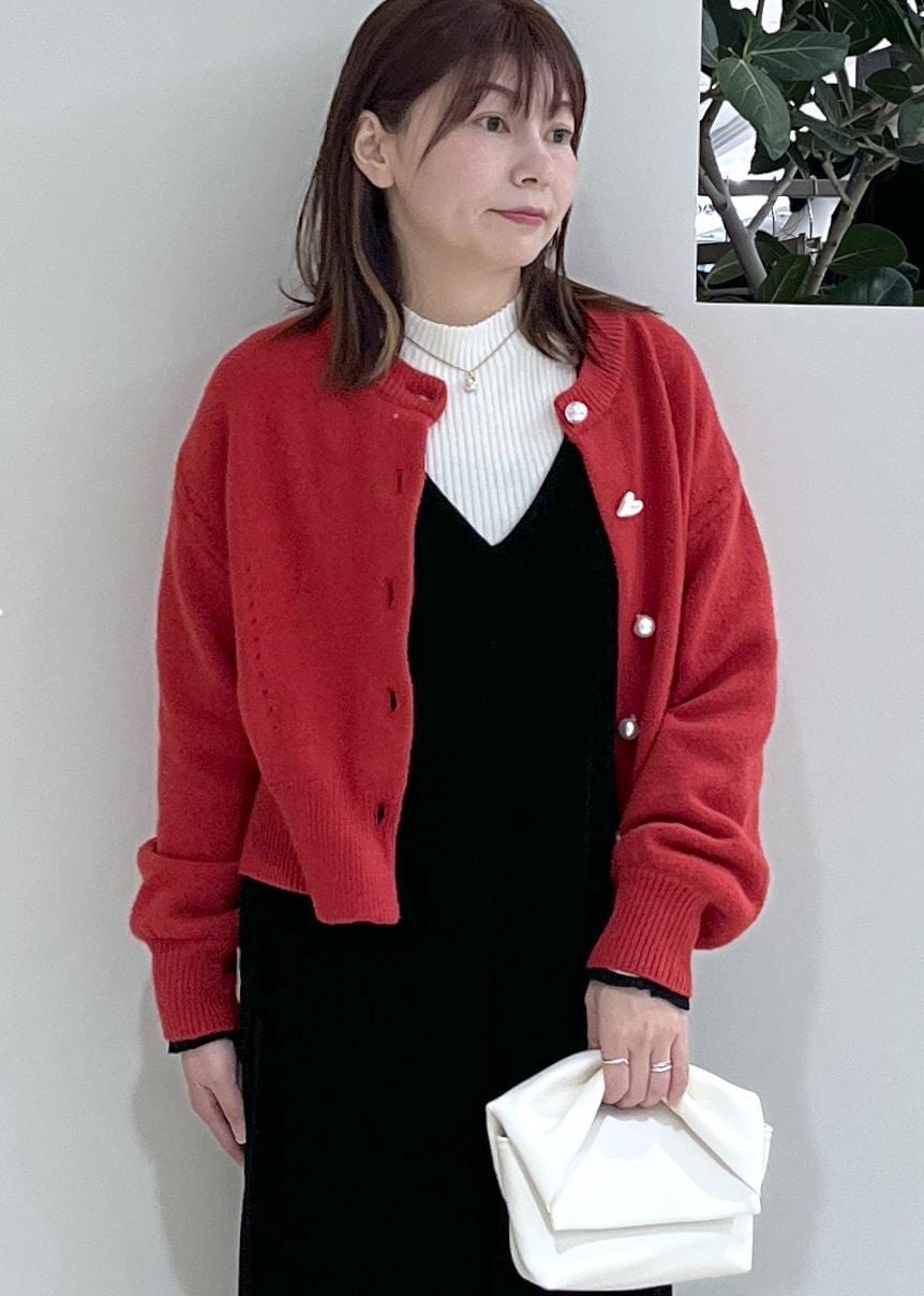 VISハートアソートパール釦ラメミックスカーディガン/イージーケア・一部WEB限定カラーレッド / F¥5,489レビューフワフワで程よくラメがキラキラしている生地です。