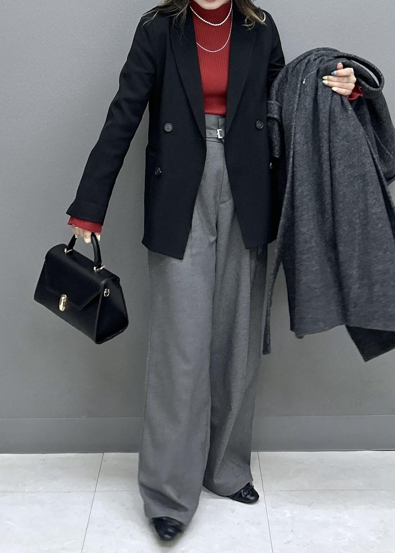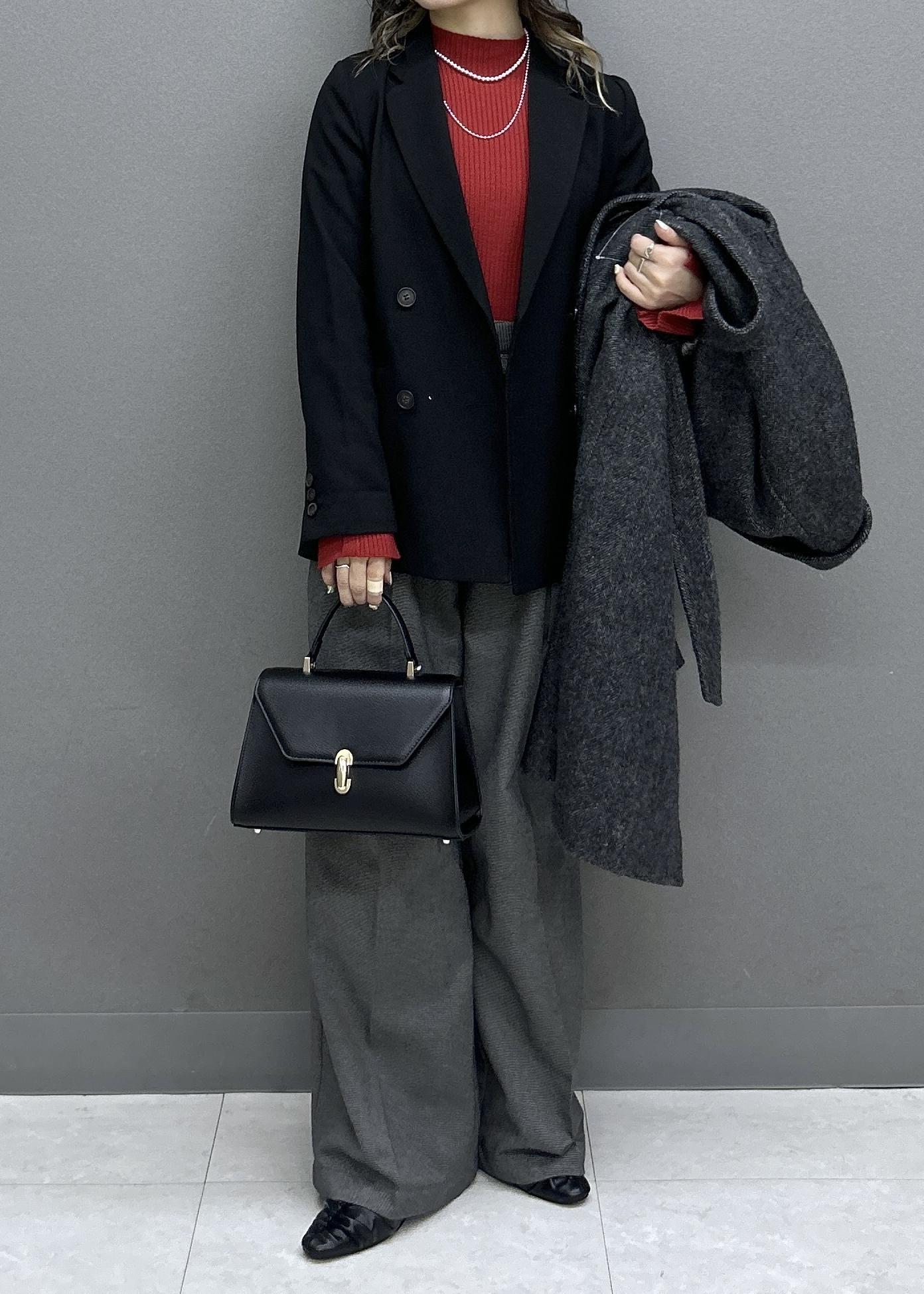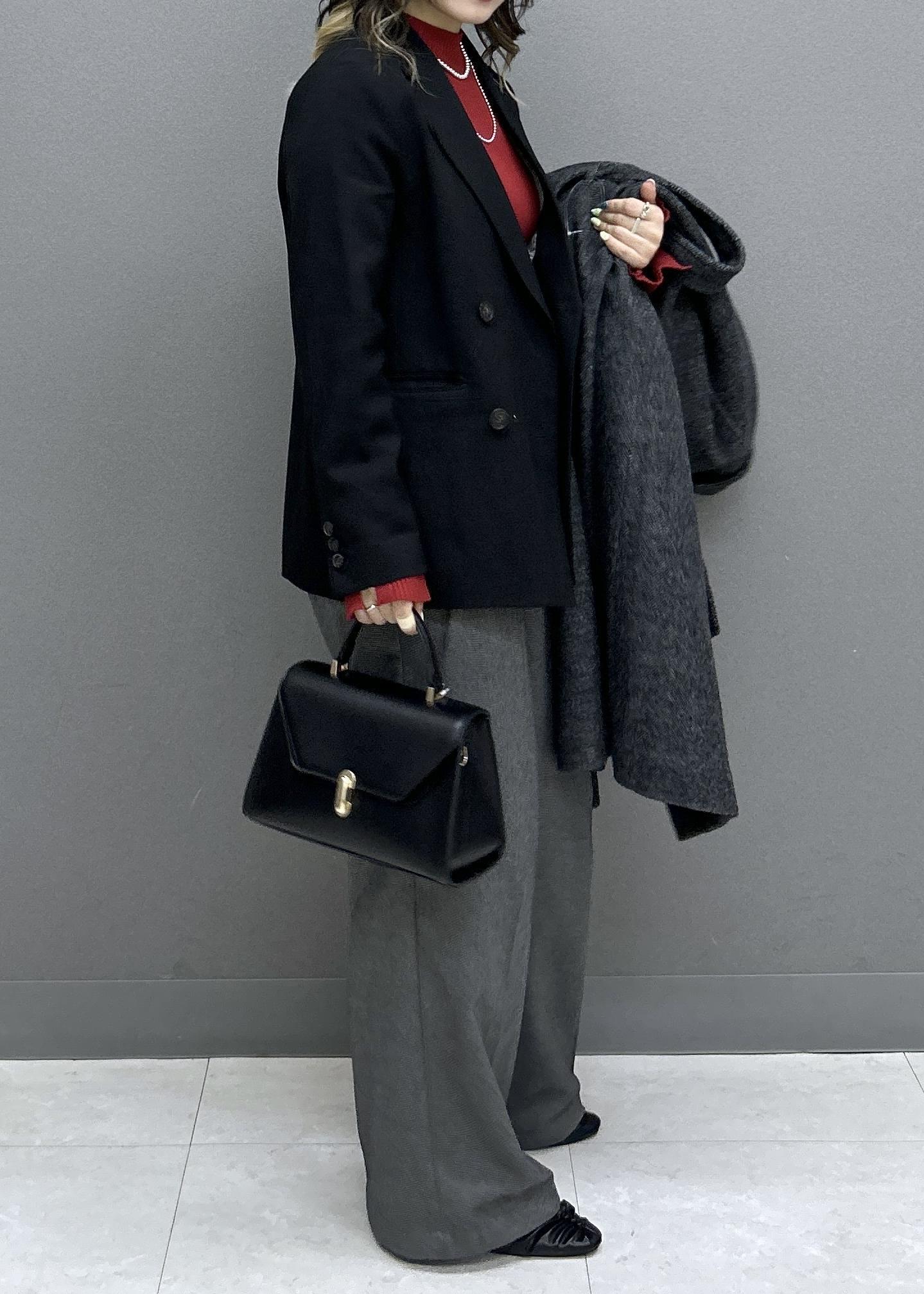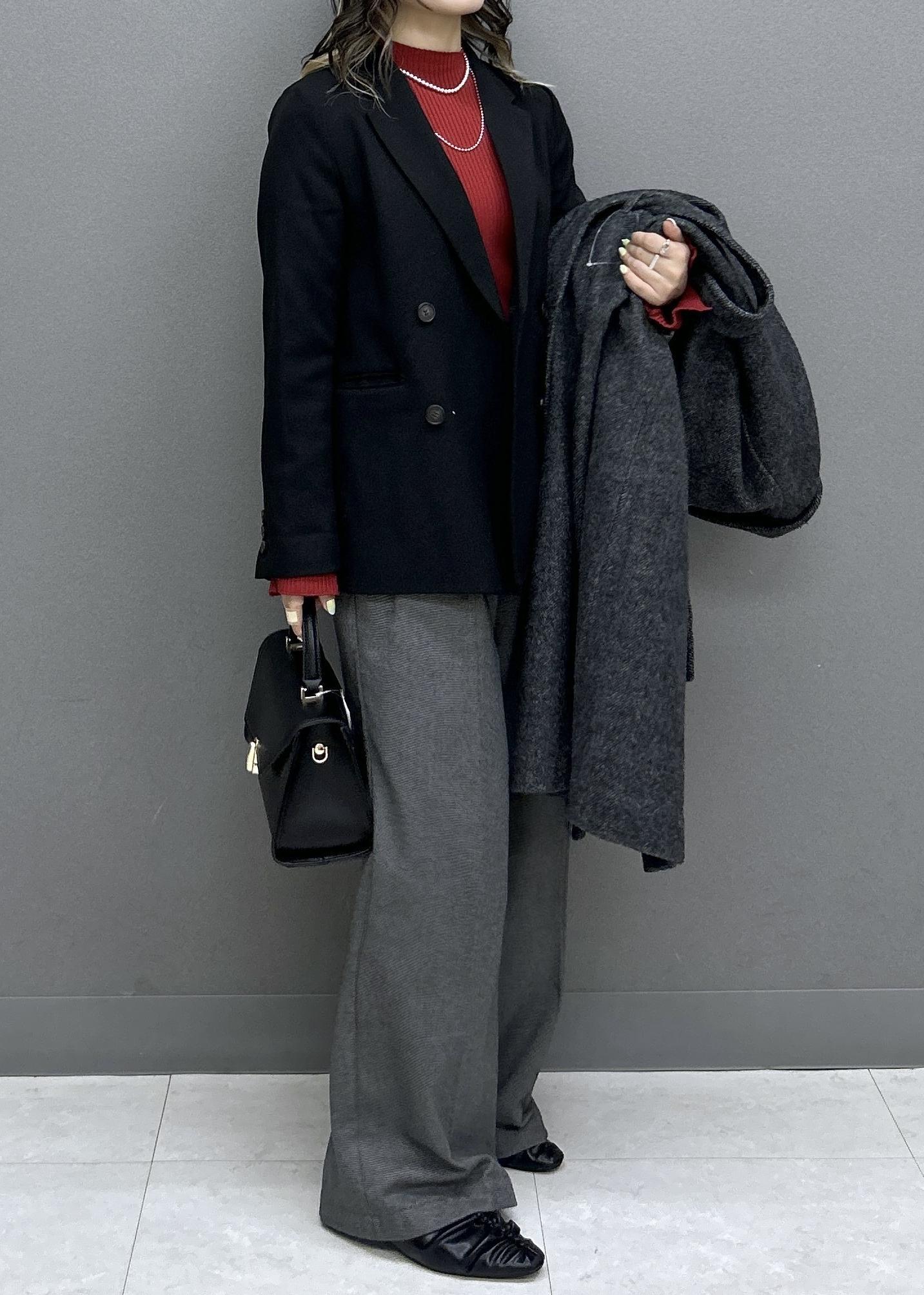 ウエストを絞ればワイドパンツと合わせてもバランス良く着られそうな長さです。