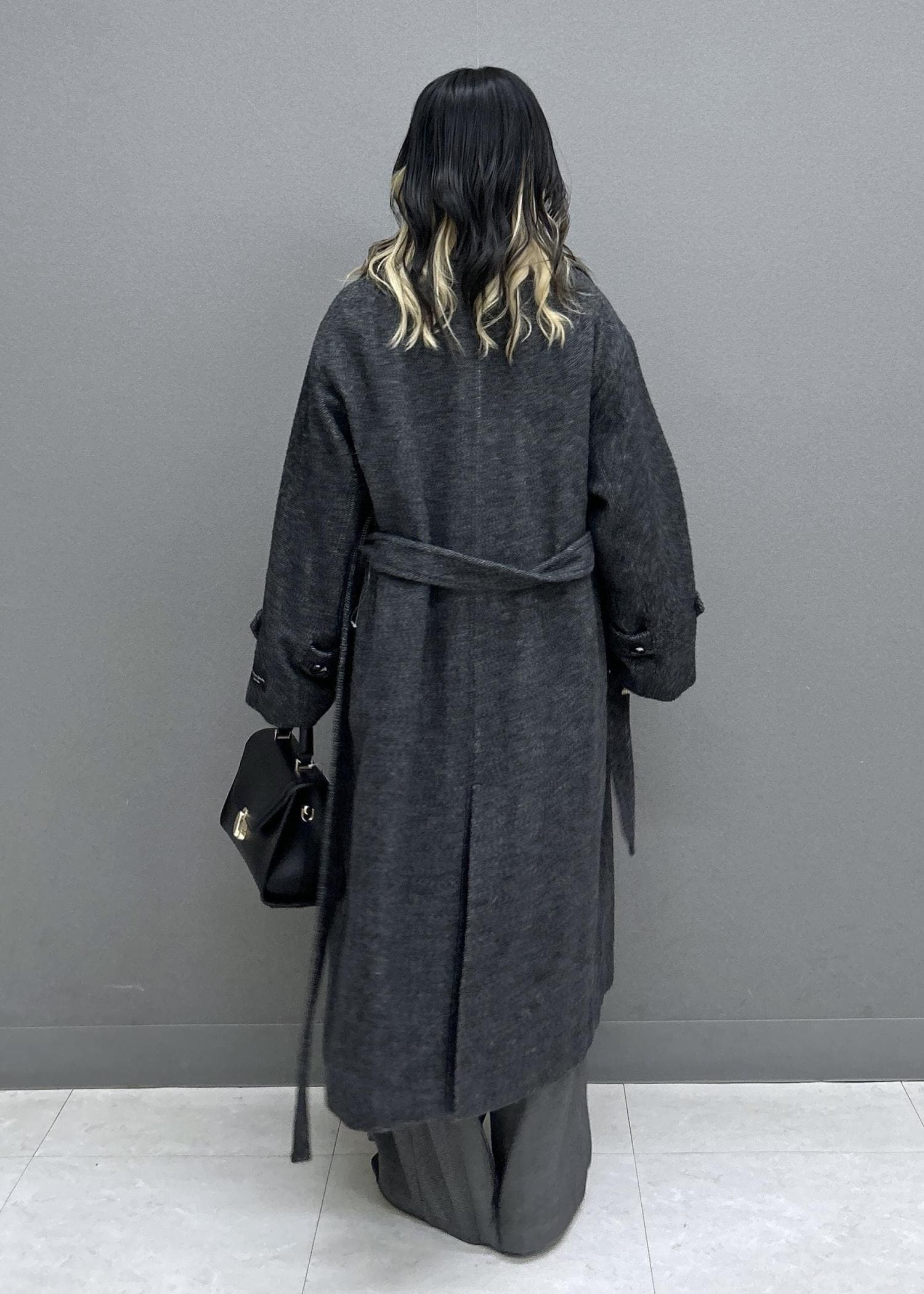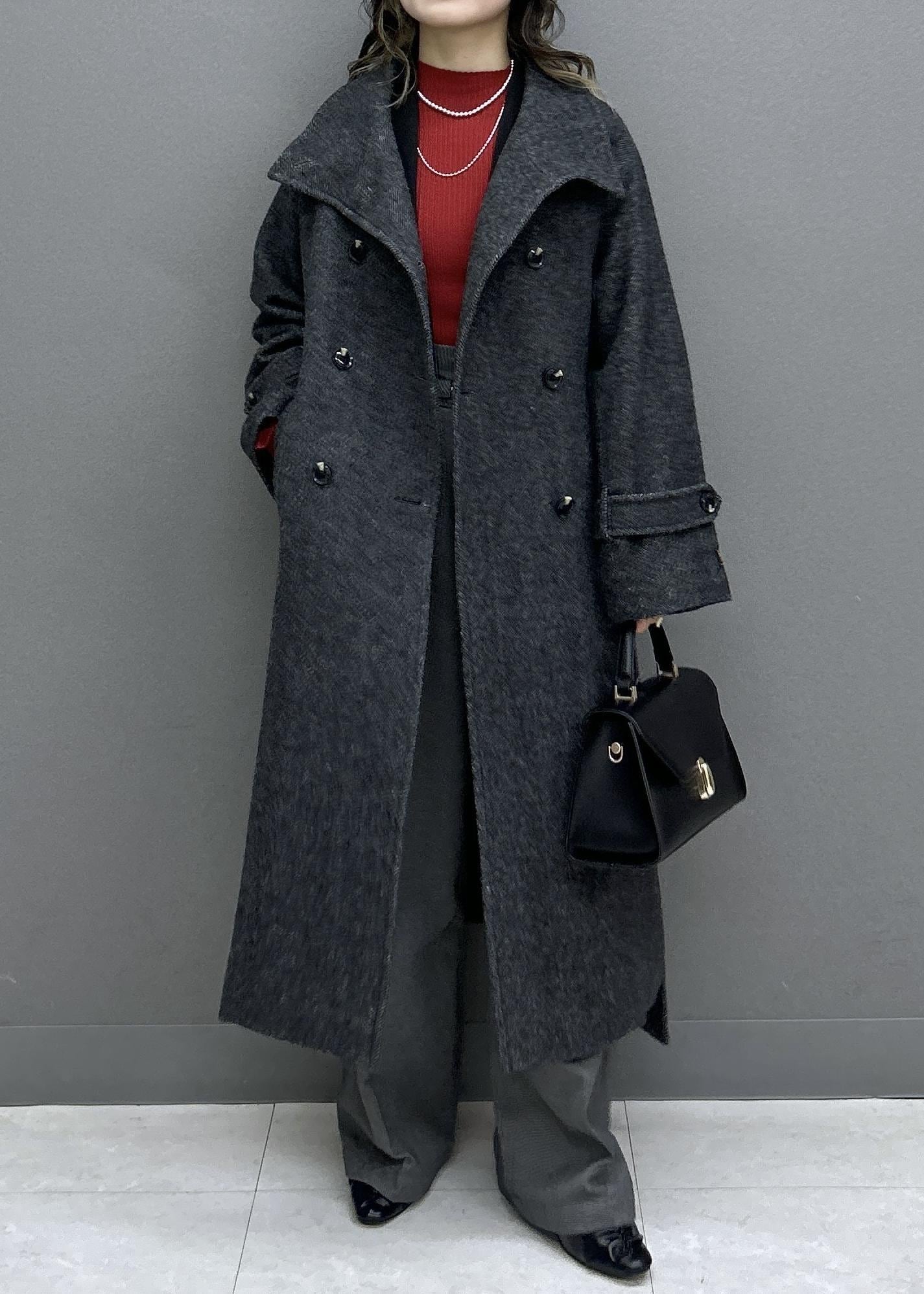 VIS尾州シャギースタンドカラーロングコート/静電気防止・WEB限定PS・TMサイズチャコール / S¥21,890レビュー157cmでSサイズを着用しています。