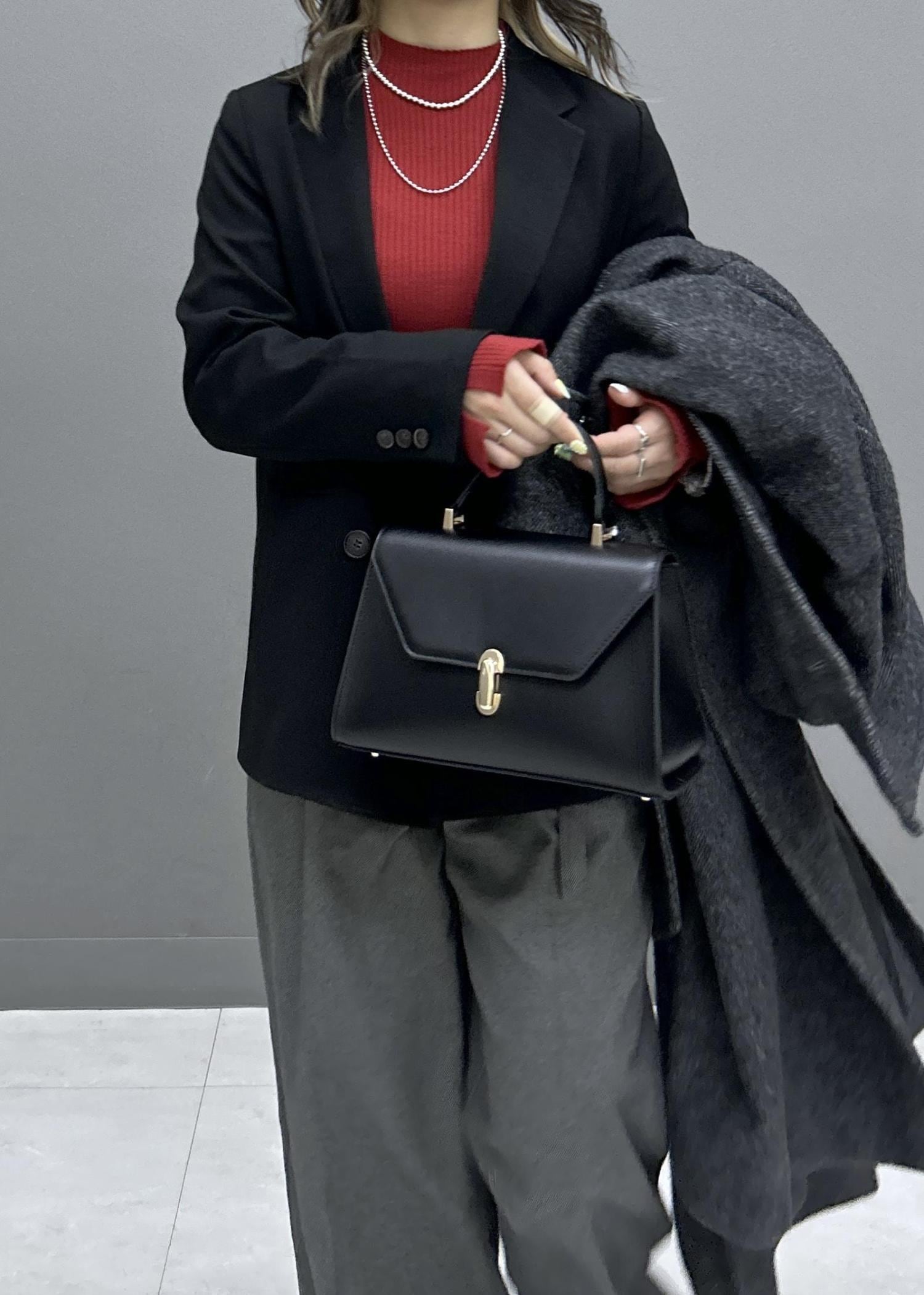 VIS楕円金具ワンハンドルバッグ/2WAYブラック / F¥7,909レビュー自立する合皮のキレイめバッグです。