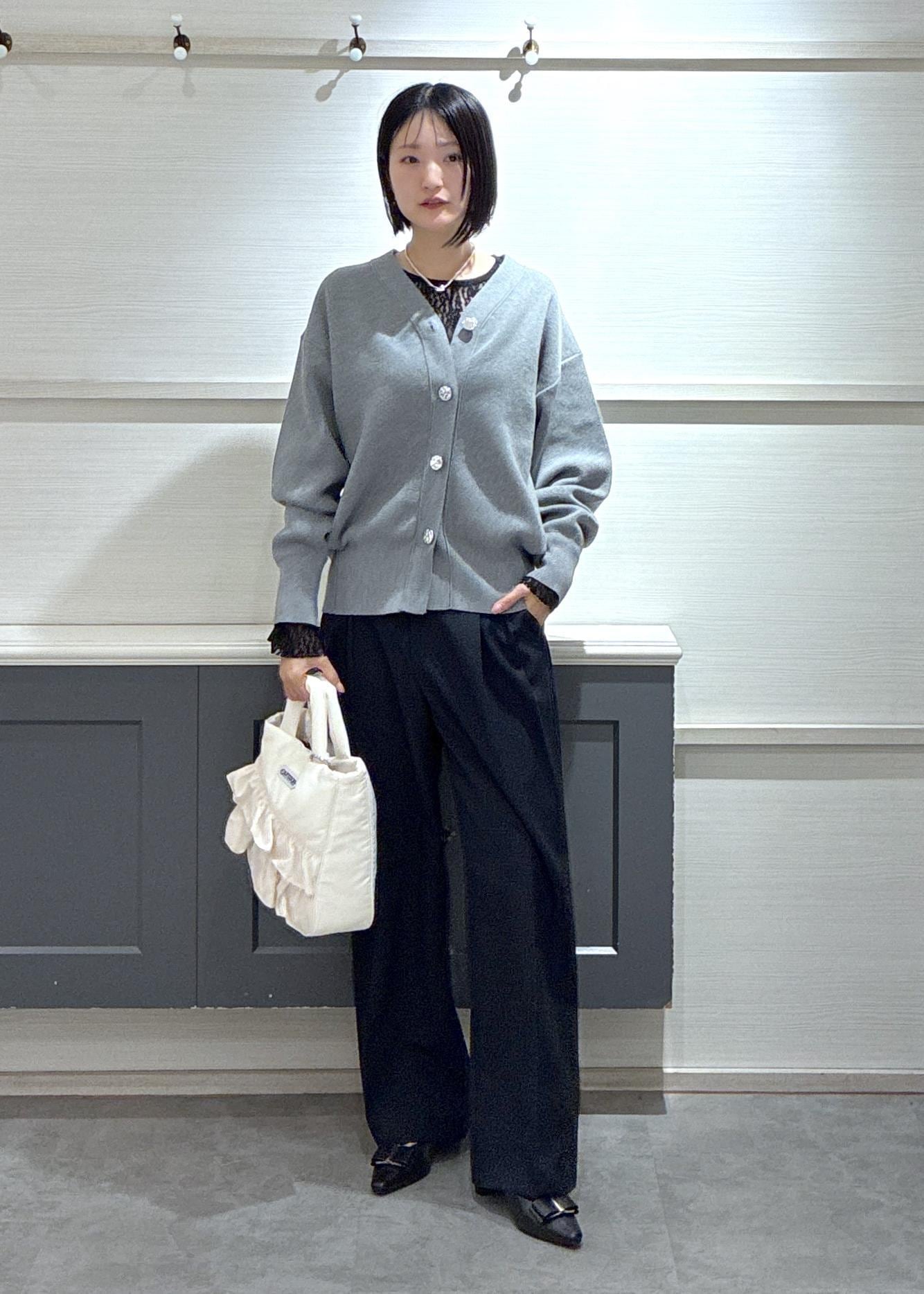 ミニフェザーカーディガン×ワイドパンツ