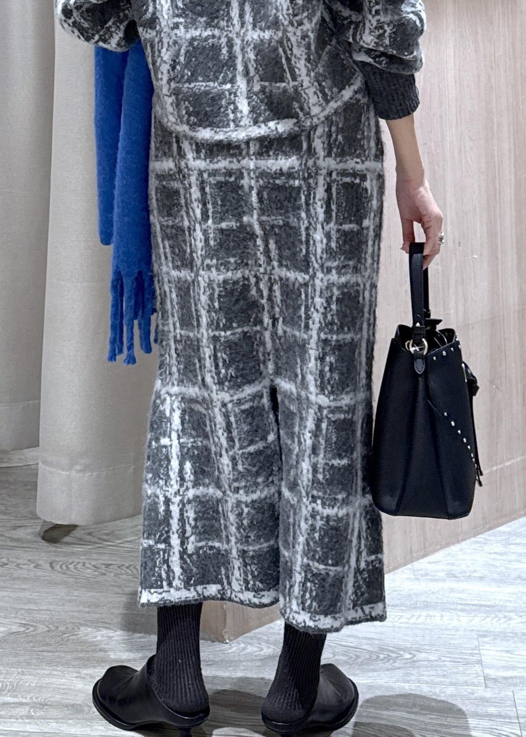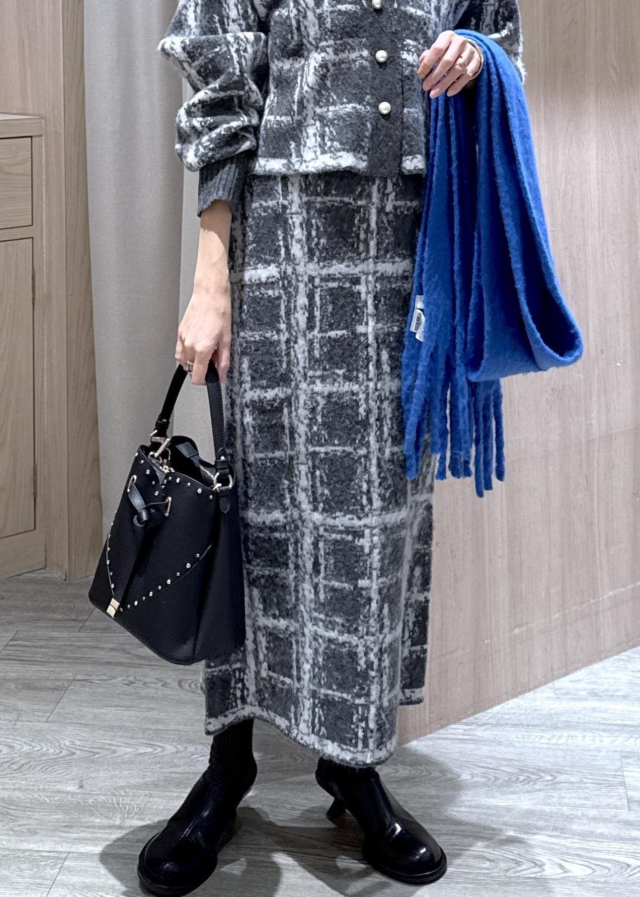 VISチェックアソートシャギーニットスカート/セットアップ対応グレー / F¥6,589レビュー身長166センチでくるぶし上の長さでした。