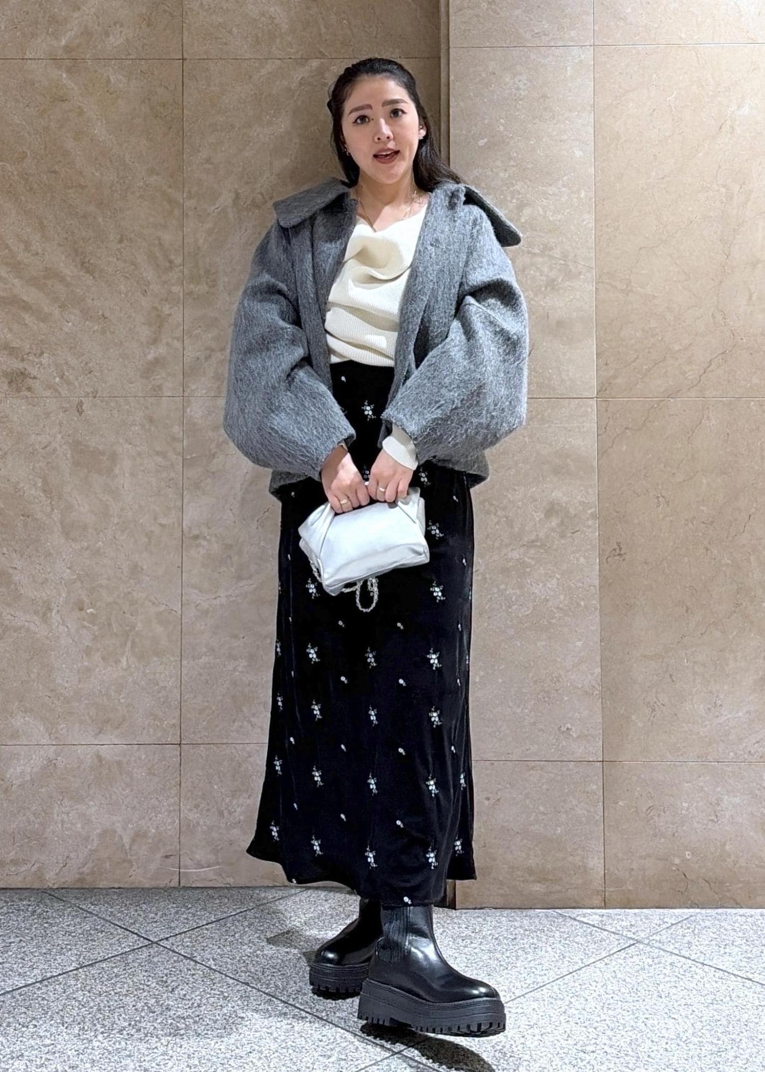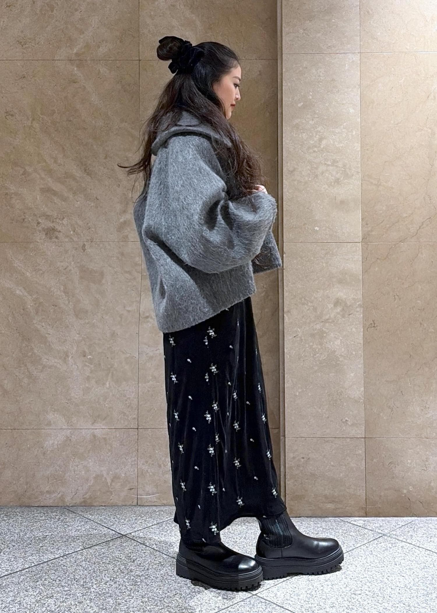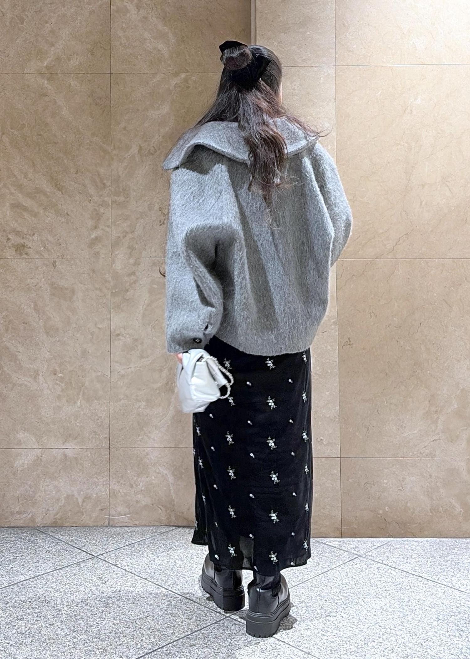 予約VIS【アウター総選挙1位】ビッグカラーモモンガシャギーショートコートグレー / S¥10,989レビュー後ろから見た時のほわんとしたスタイルが可愛すぎて、体型カバーもバッチリ◎