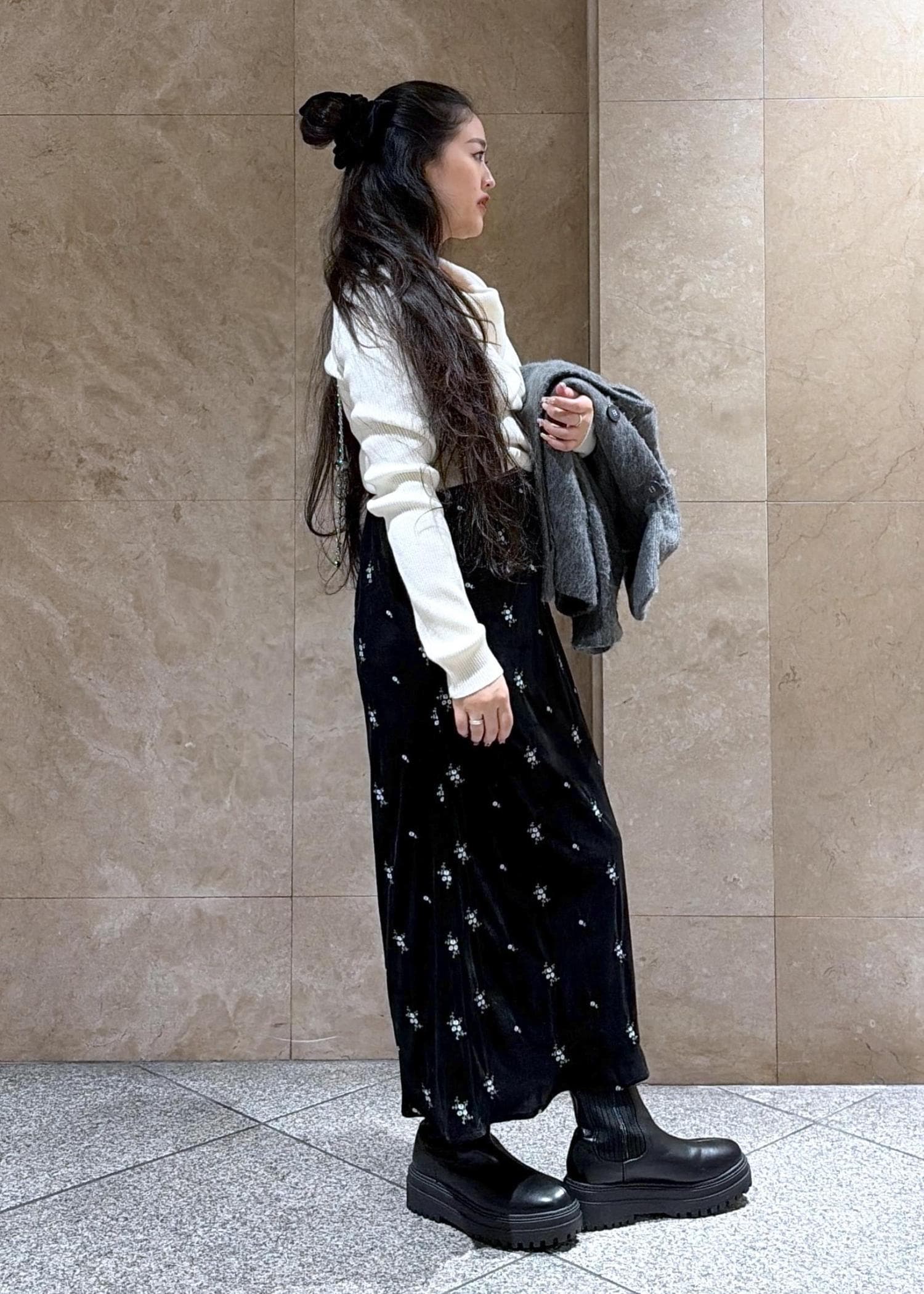 VIS刺繍アソートベロアキャミワンピース/2WAYブラック系 / F¥8,899レビューベロアのモチモチ感がとても肌触りよく、ワンピースの裏地が少し短めで裾の透け感がとっても可愛いです♡