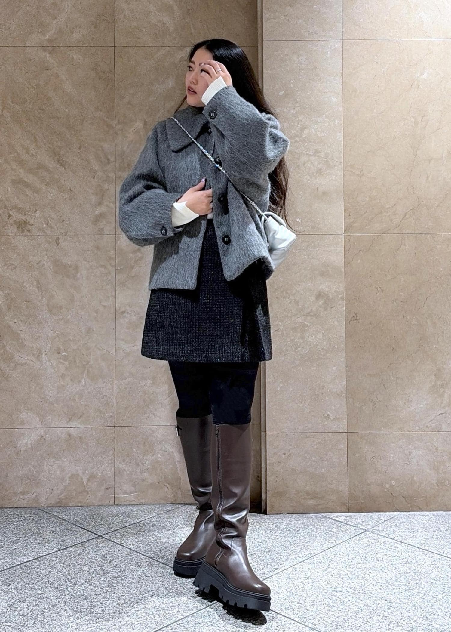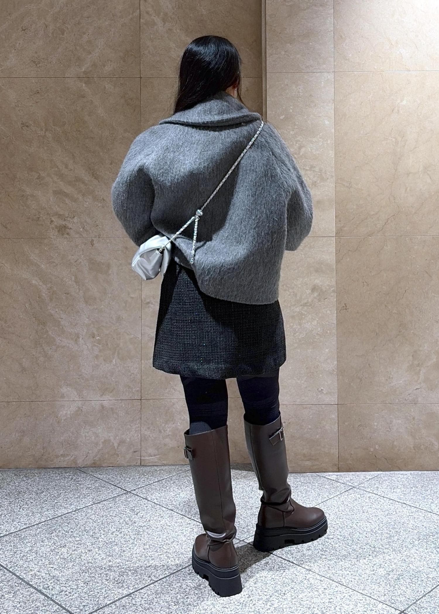 予約VIS【アウター総選挙1位】ビッグカラーモモンガシャギーショートコートグレー / S¥10,989レビュー後ろから見た時のほわんとしたスタイルが可愛すぎて、体型カバーもバッチリ◎