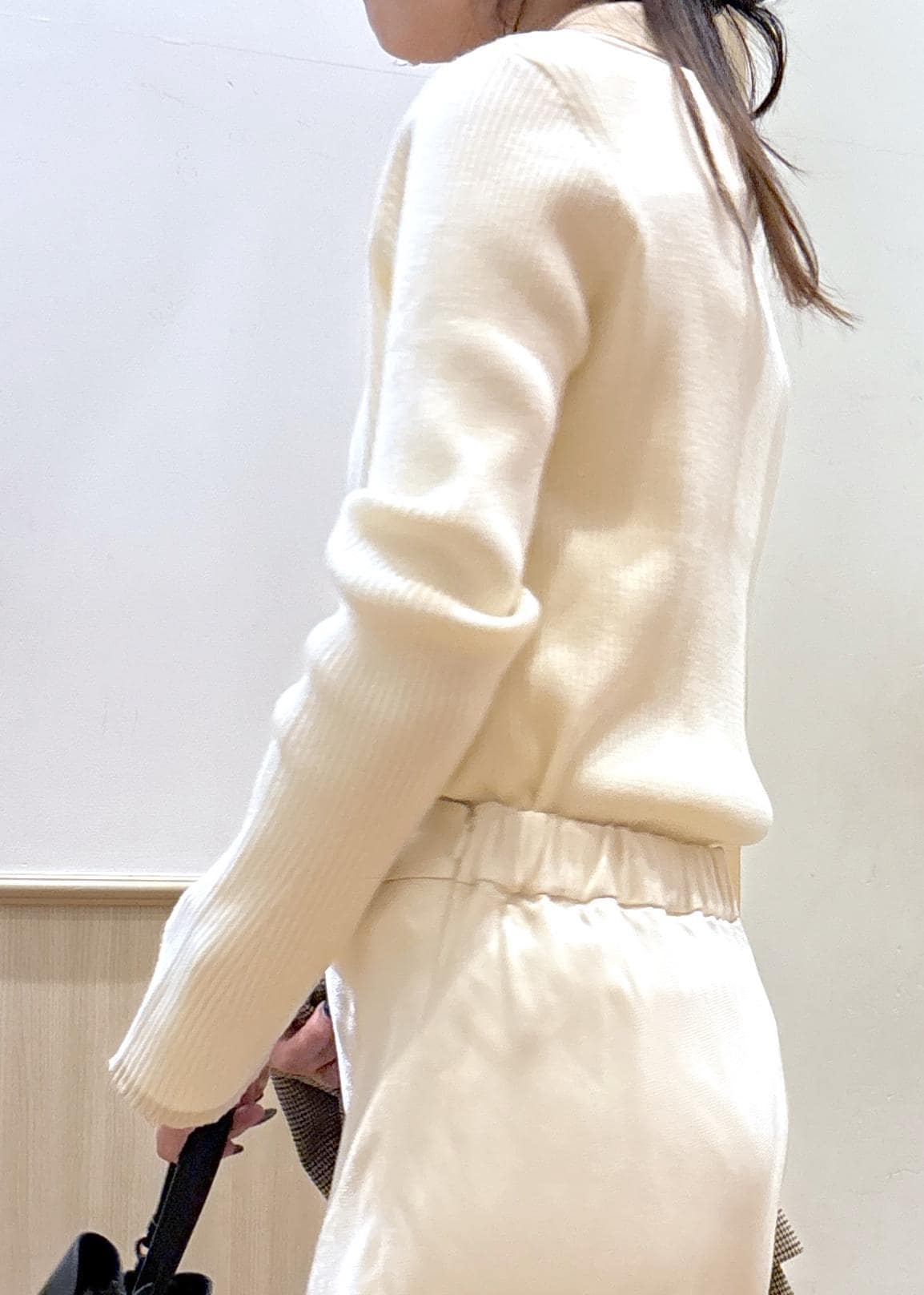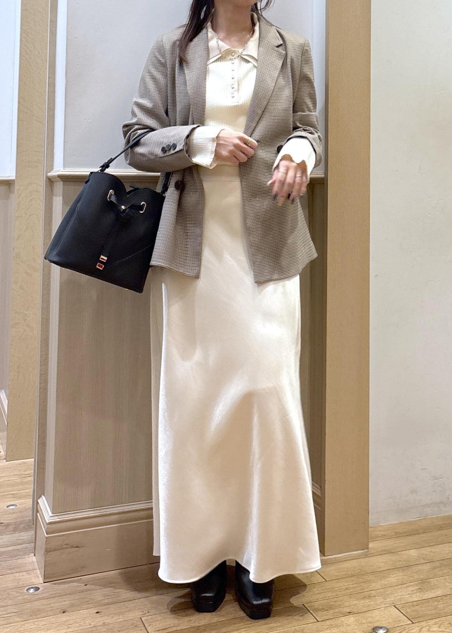 綺麗めな細身シルエットですが、ピッタリもしすぎず、体のラインをとても綺麗に見せてくれます。