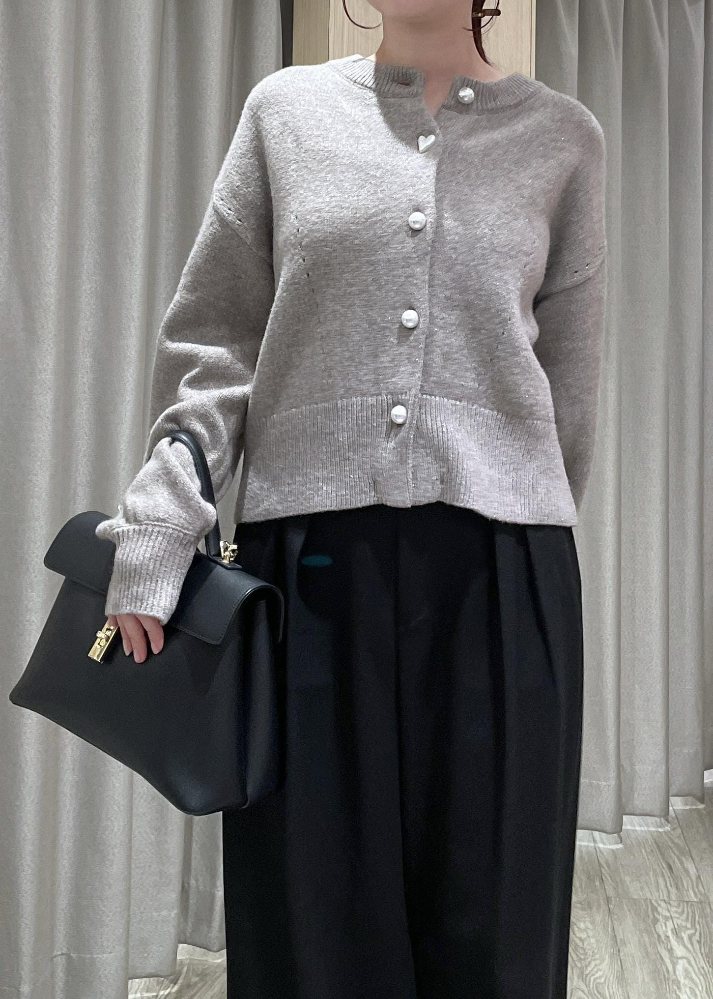 VISハートアソートパール釦ラメミックスカーディガン/イージーケア・一部WEB限定カラーブラウン / F¥5,489レビュー身長159cmで腰ちょうどのコンパクトな着丈、身幅は広めなのでゆったり着用できます。敏感肌ですがチクチク感は無く、もちっとした柔らかさで着心地もかなり良いです◎