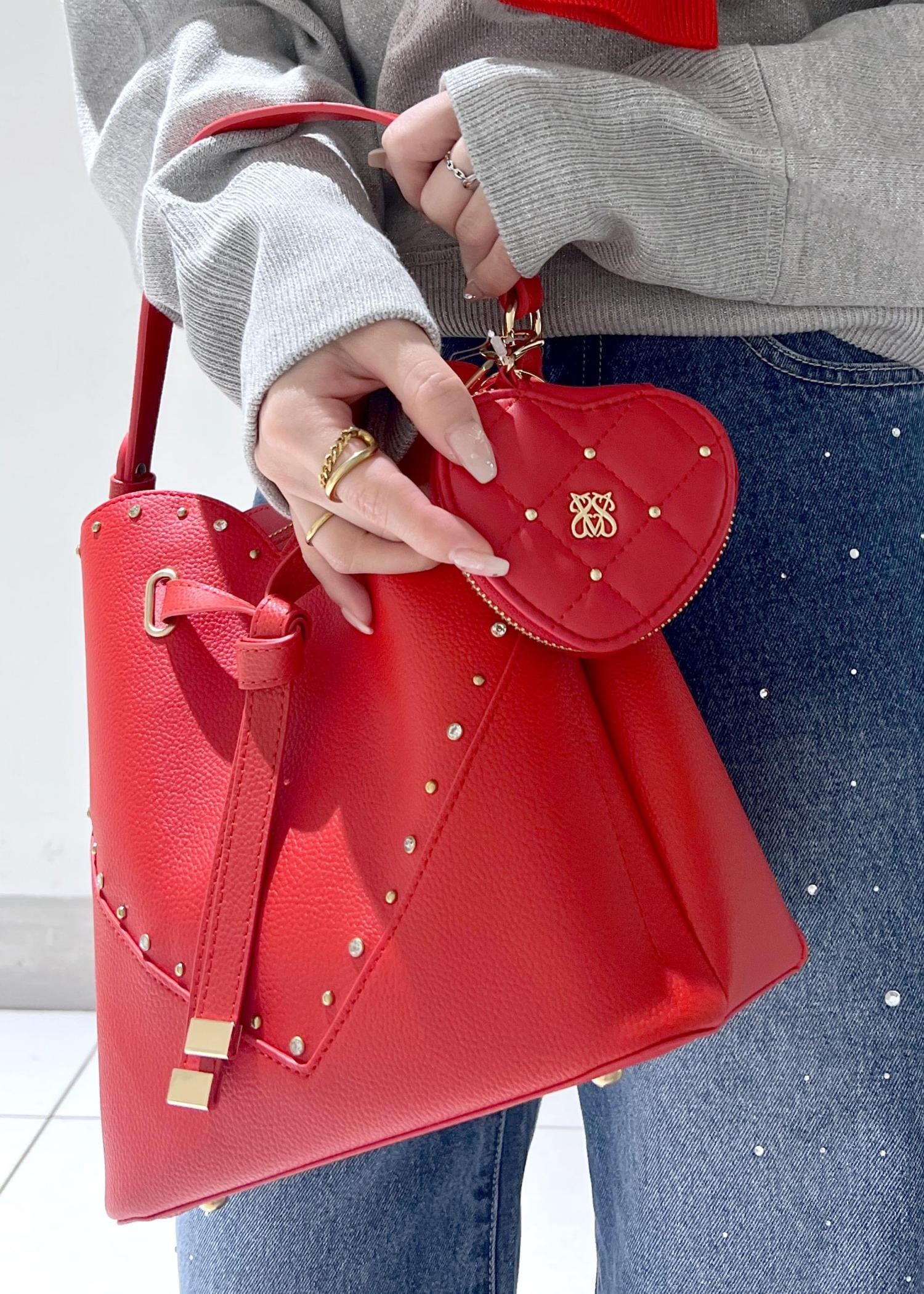 NEW!VISラインストーン&スタッズハートカットバッグレッド / F¥7,909レビューショルダーとしても使えるハートバッグ❤︎