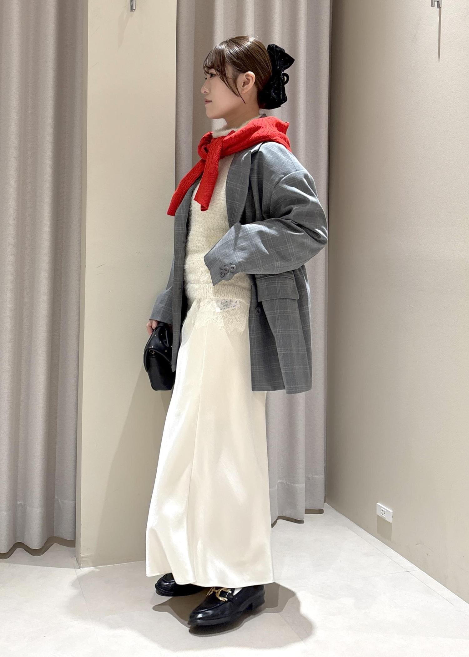 NEW!VISラメフェザー裾レースハイネックニットオフホワイト / F¥6,589レビュー首元まであるニットなのでとても暖かいです。