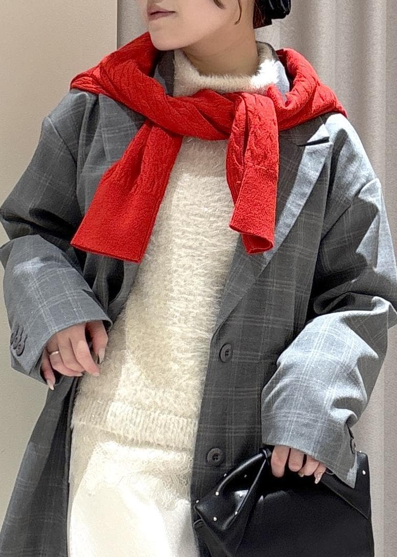 VIS【POLO BCS】VIS別注ミニケーブルノーカラーニットカーディガンレッド / F¥6,930レビューシャツインなどがしやすい薄めのカーディガンです。