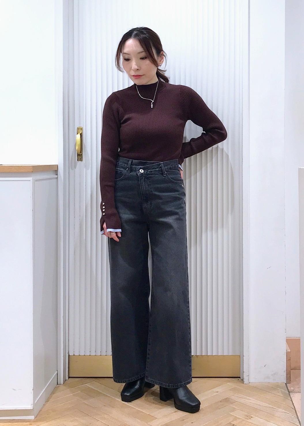 袖口は釦で太さを調節できます。スタイリング画像では細い方に調節して着用しています。
