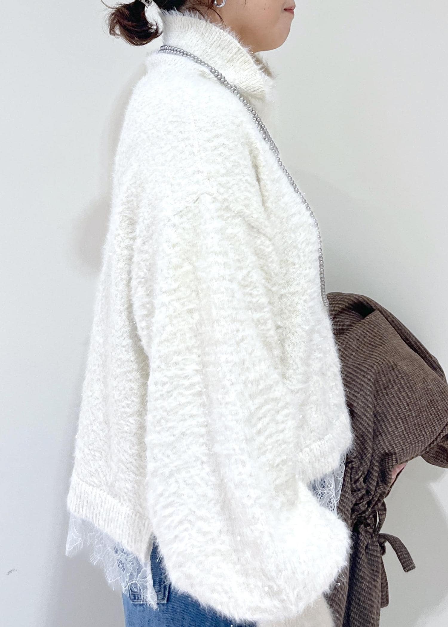 NEW!VISラメフェザー裾レースハイネックニットオフホワイト / F¥6,589レビューざっくりなタートルニット。