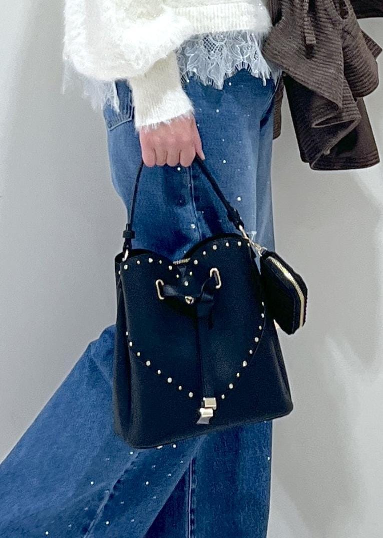 NEW!VISラインストーン&スタッズハートカットバッグブラック / F¥7,909レビュー人気のハートカットバッグにスタッズとラインストーンが付いたキラキラなバッグです!