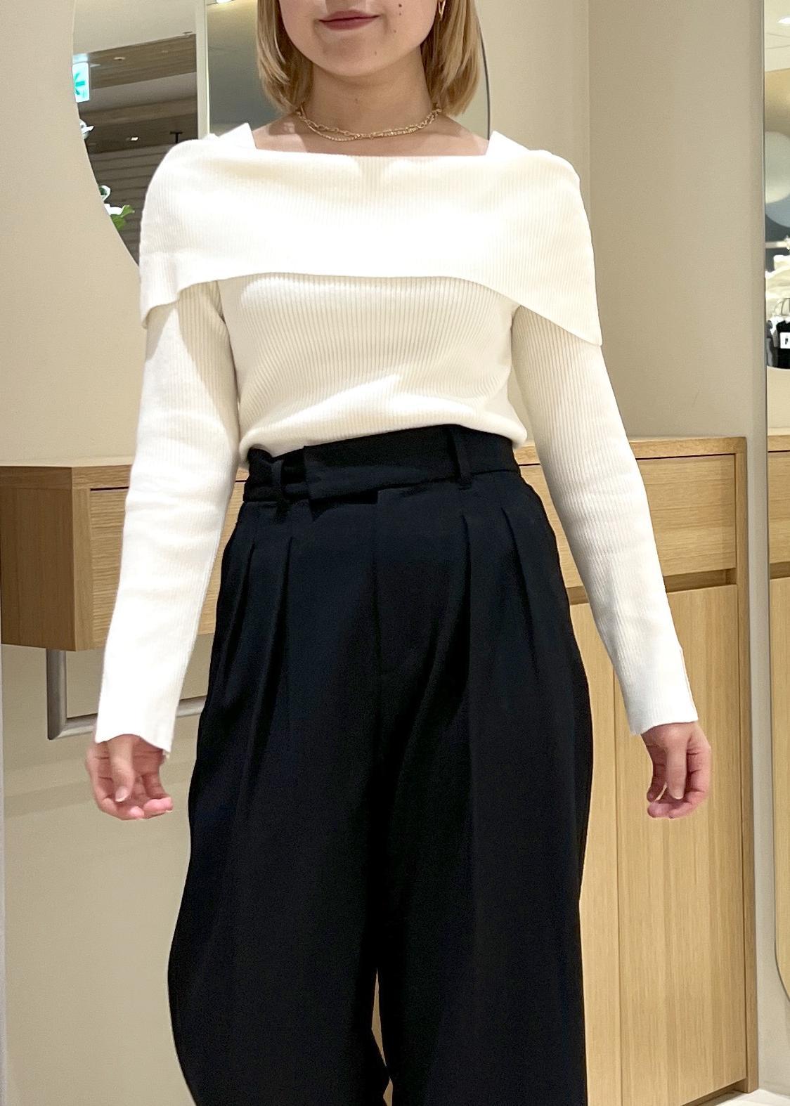NEW!VIS【美得】オフショルダーモチモチリブニット/好評につき再入荷オフホワイト / F¥5,489レビューVISで大人気のオフショルが