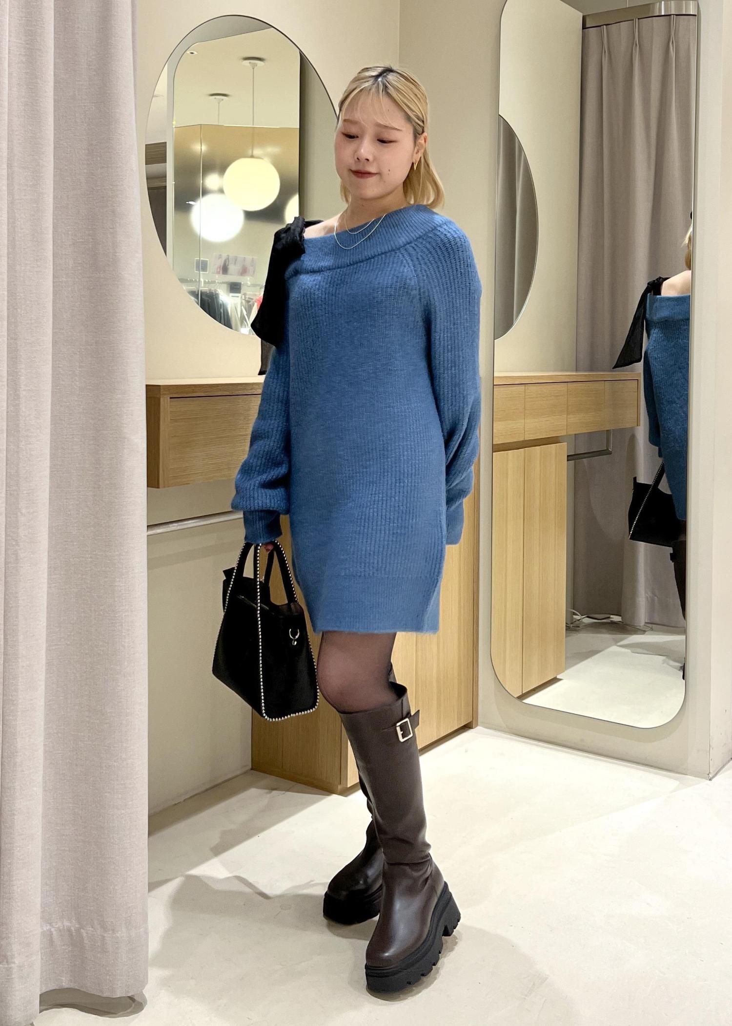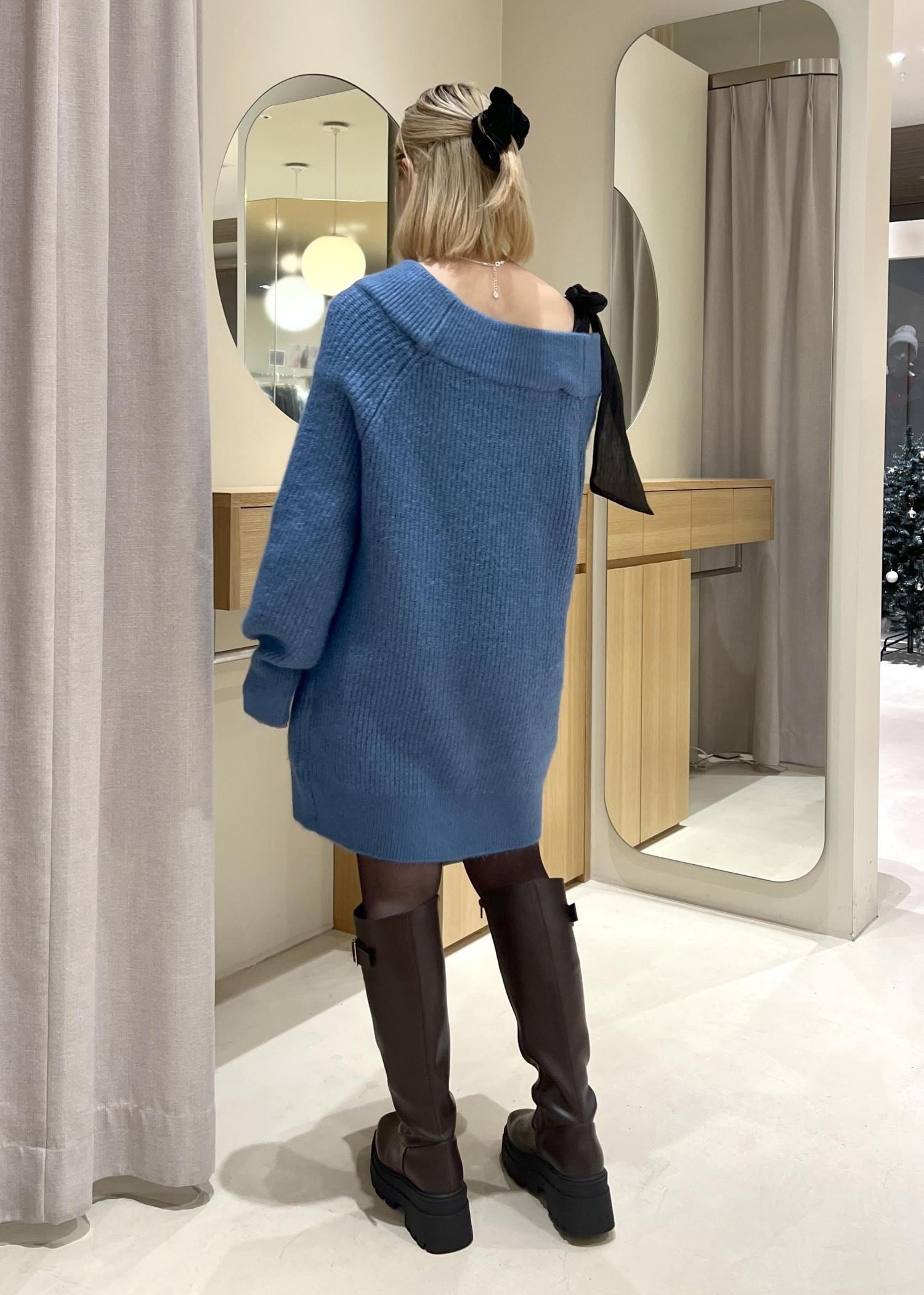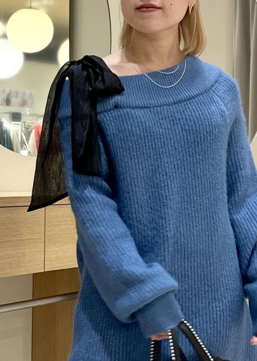 VIS肩リボンミニ丈ニットワンピース/2WAYブルー系 / F¥7,909レビュー一枚で可愛さ溢れるニットワンピです!