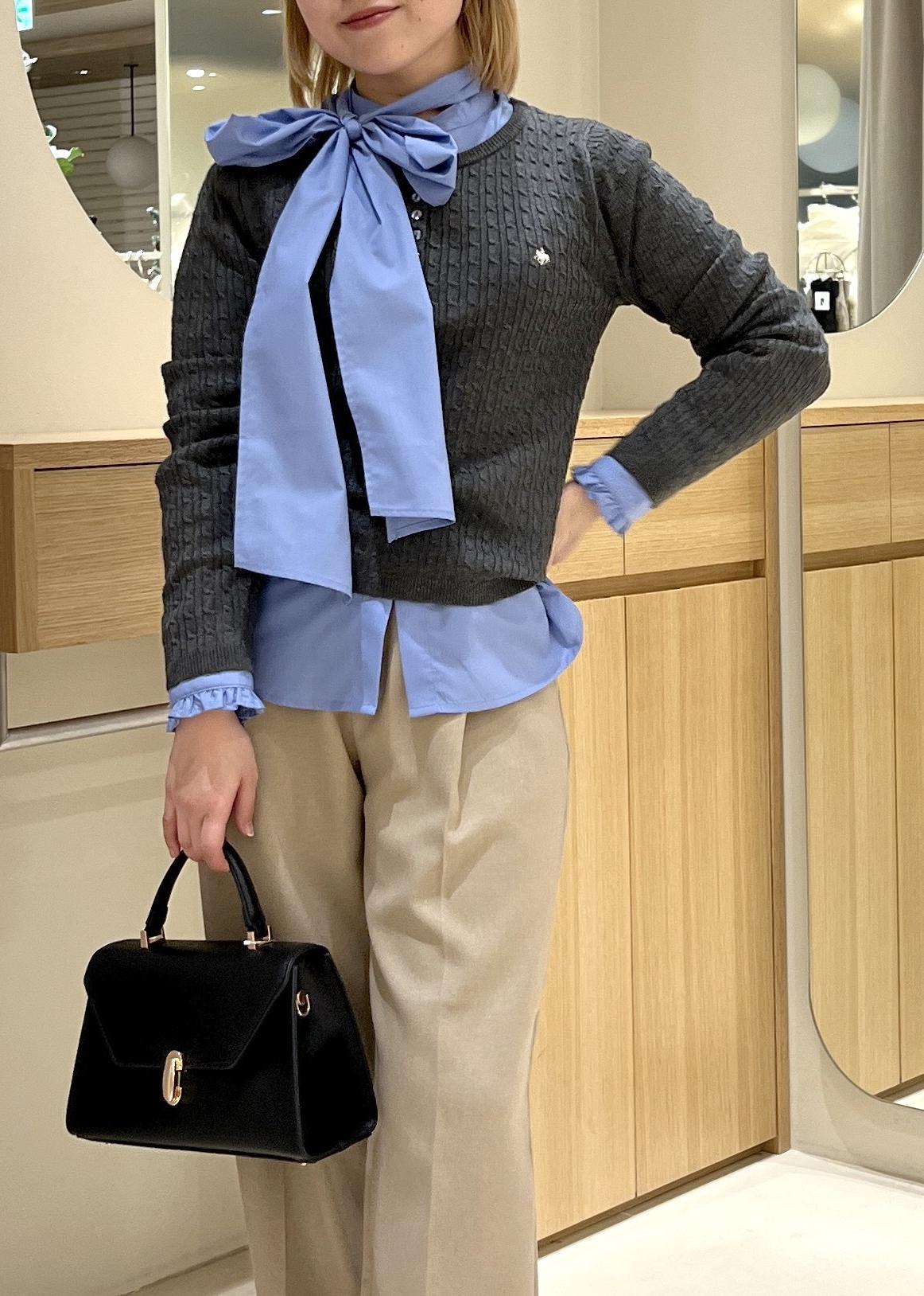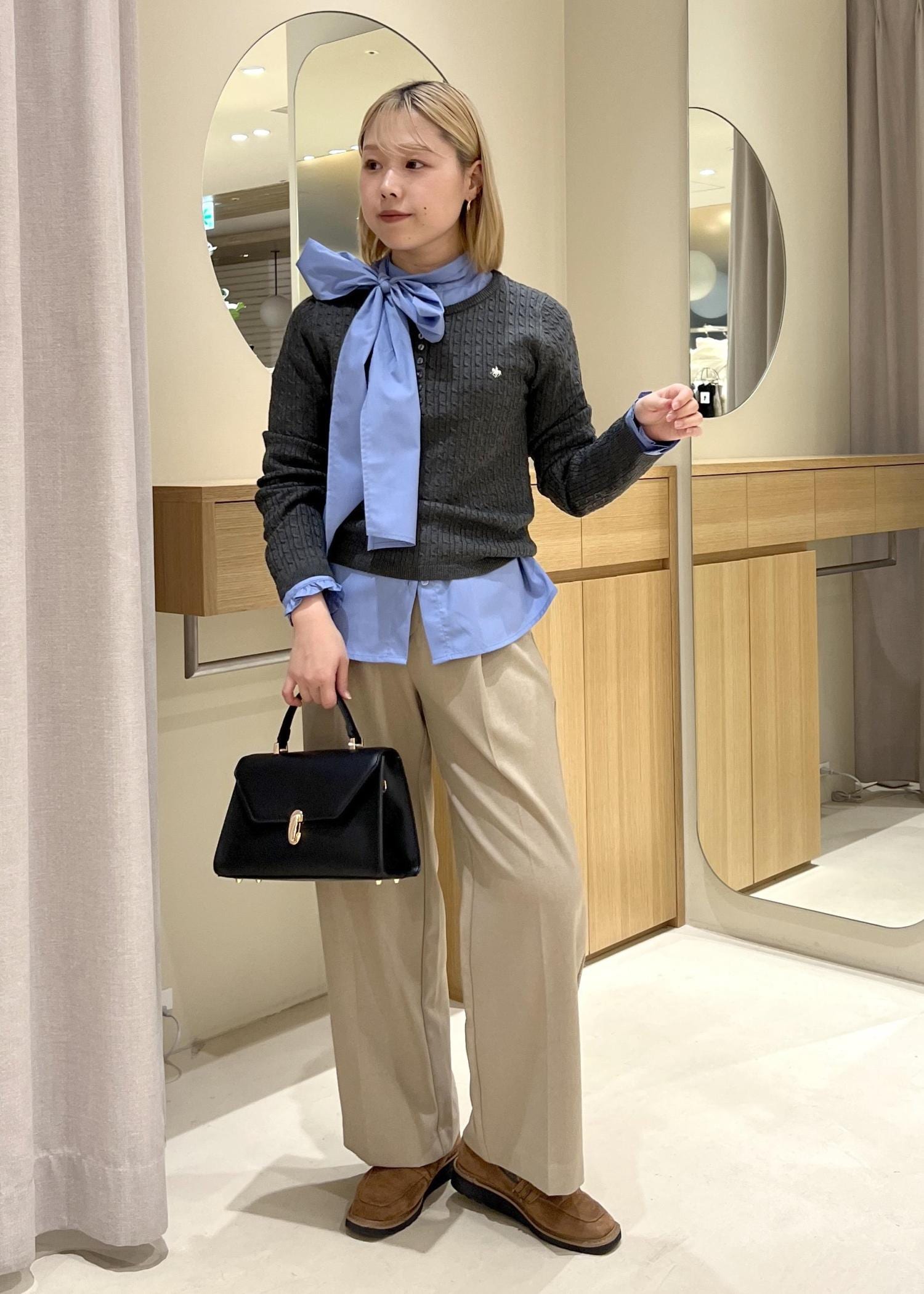 トレンドのグレー×サックスでカジュアルなオフィスコーデにしてみました!おしゃれ感もありつつ、きちんと感も取り入れてみましたので、参考にしていただけたら嬉しいです☆