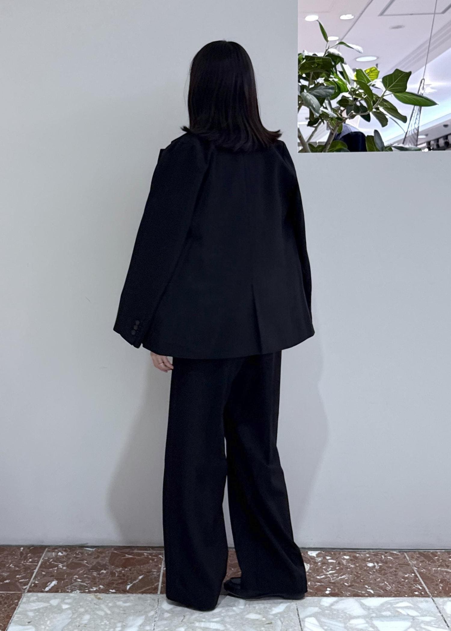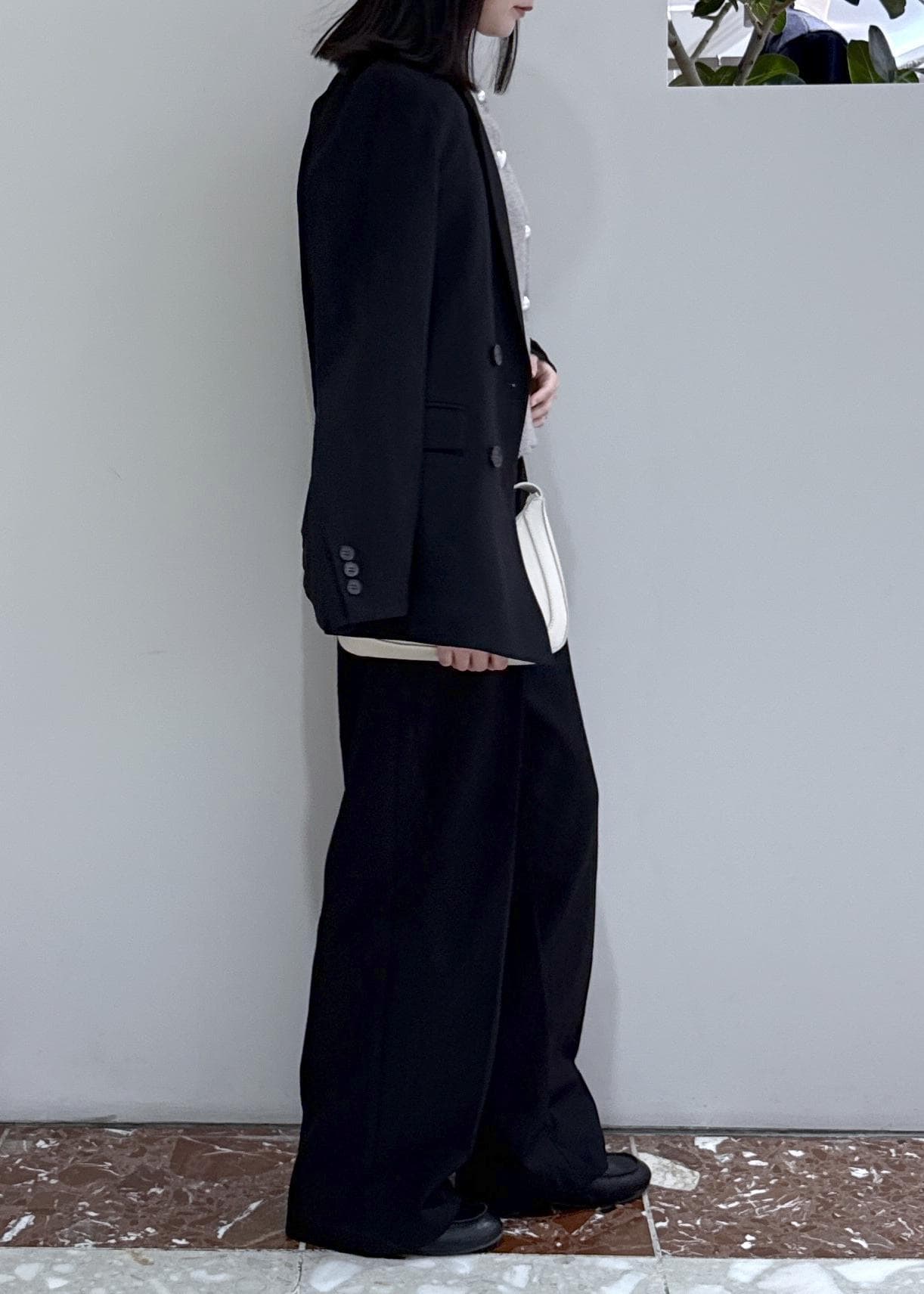 VIS【美easy】ウーリッシュダブルブレストテーラードジャケット【セットアップ対応/洗える】ブラック / M¥8,899レビュー164cm、Mサイズ着用でヒップの隠れる丈感。