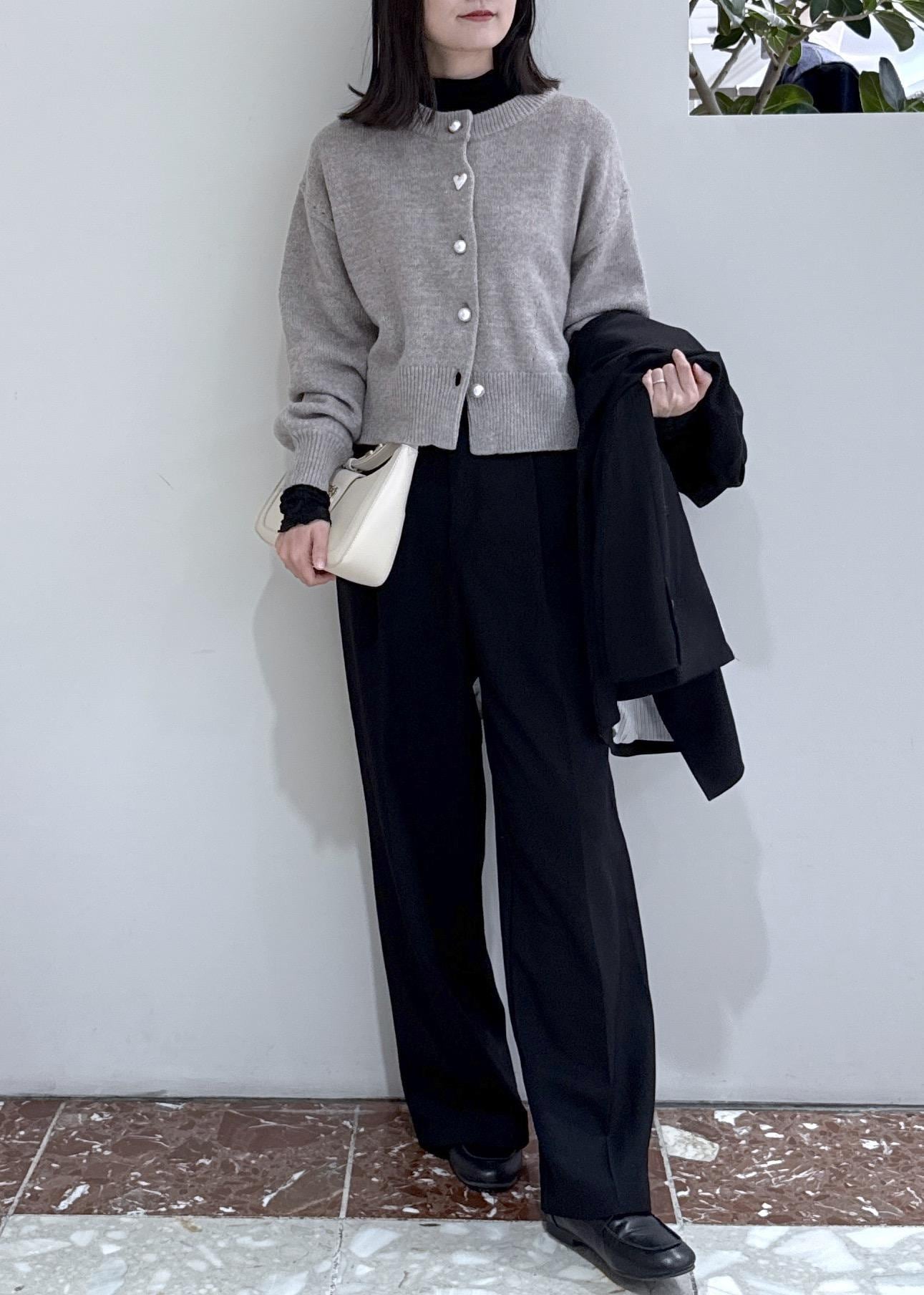 中に薄手のトップスを合わせられるくらいのサイズ感なので、本格的に寒くなっても使えそう◎ -