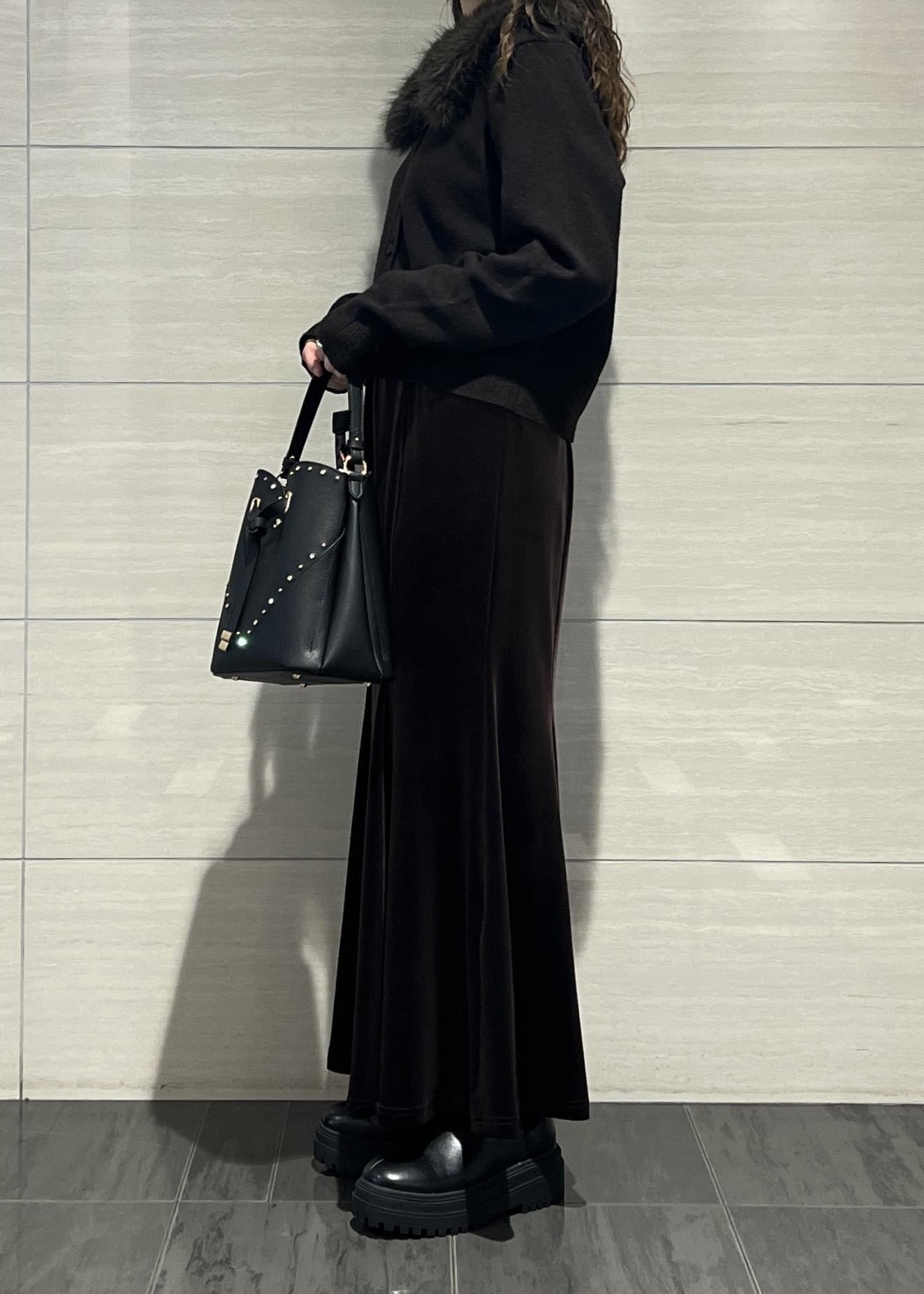 VISベロアナロースカートダークブラウン / S¥6,589レビュー152cmでSサイズを着用、くるぶしがしっかり隠れる丈感です。