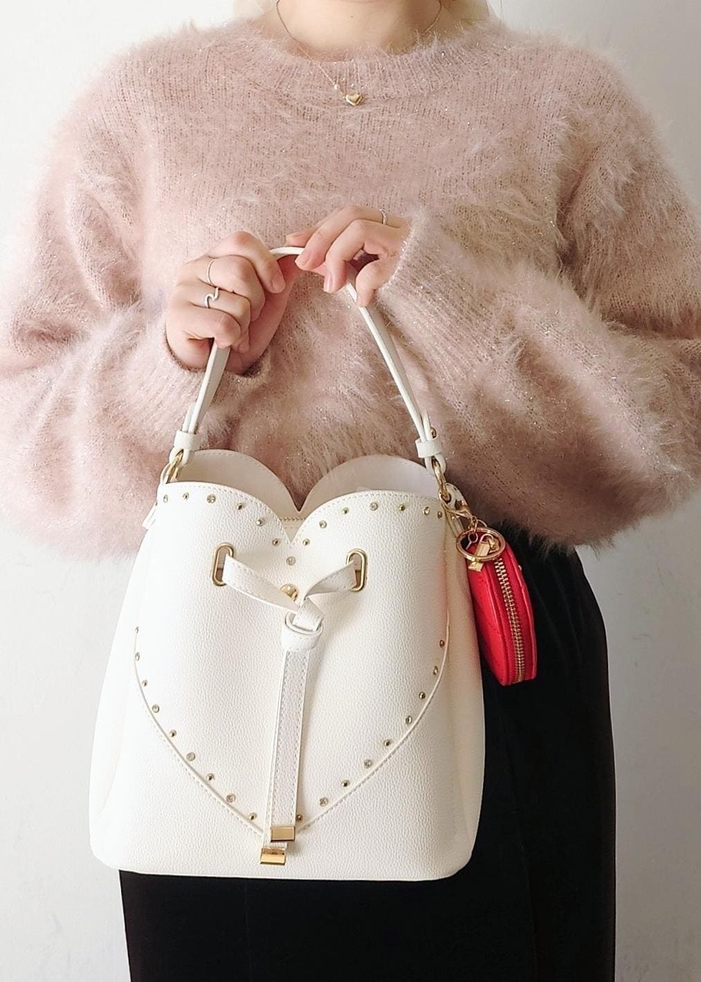 いつものハートカットバッグと使い心地は変わらず、スタッズやストーンのキラキラ感が可愛い今だけ限定のデザインです。 -