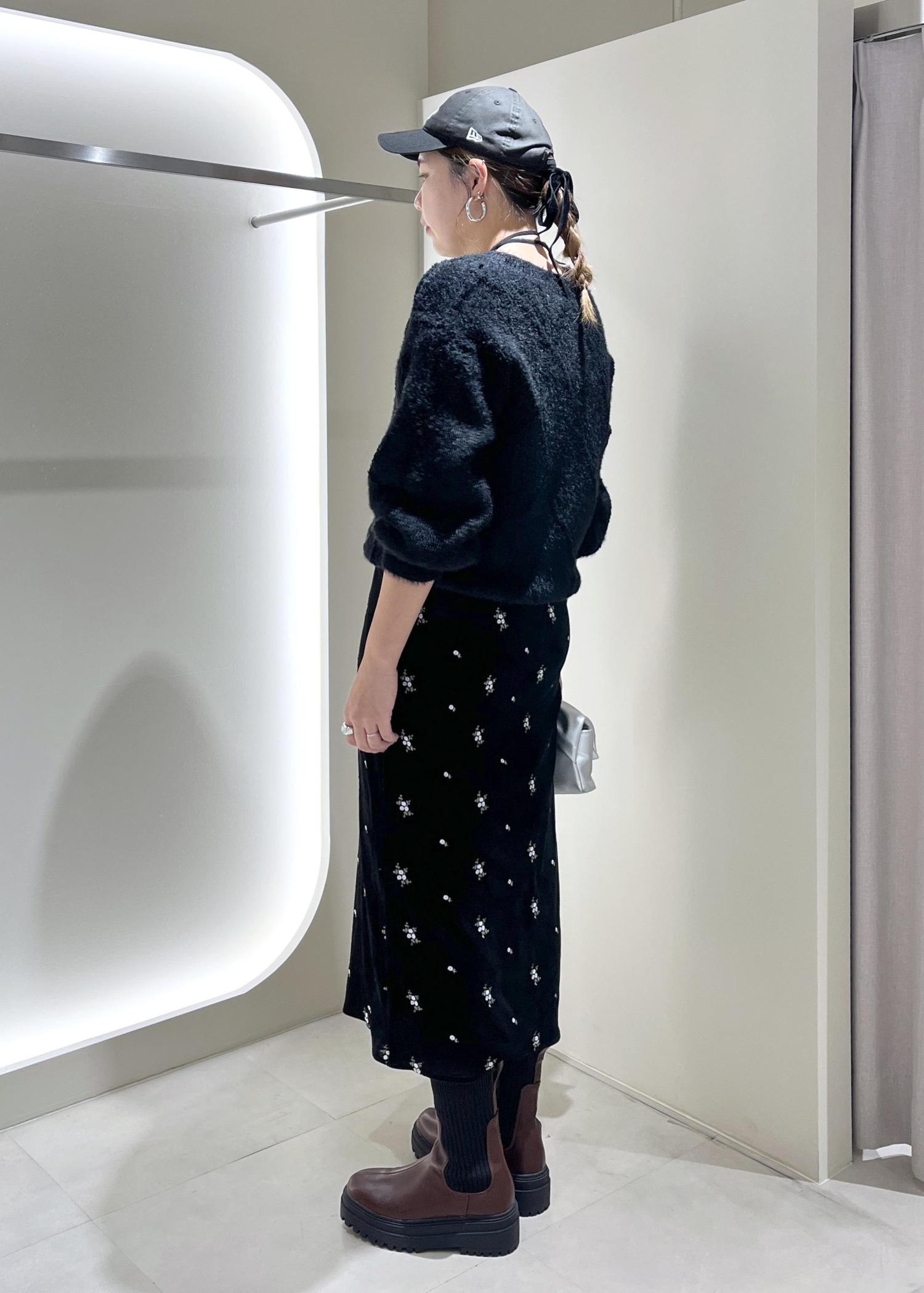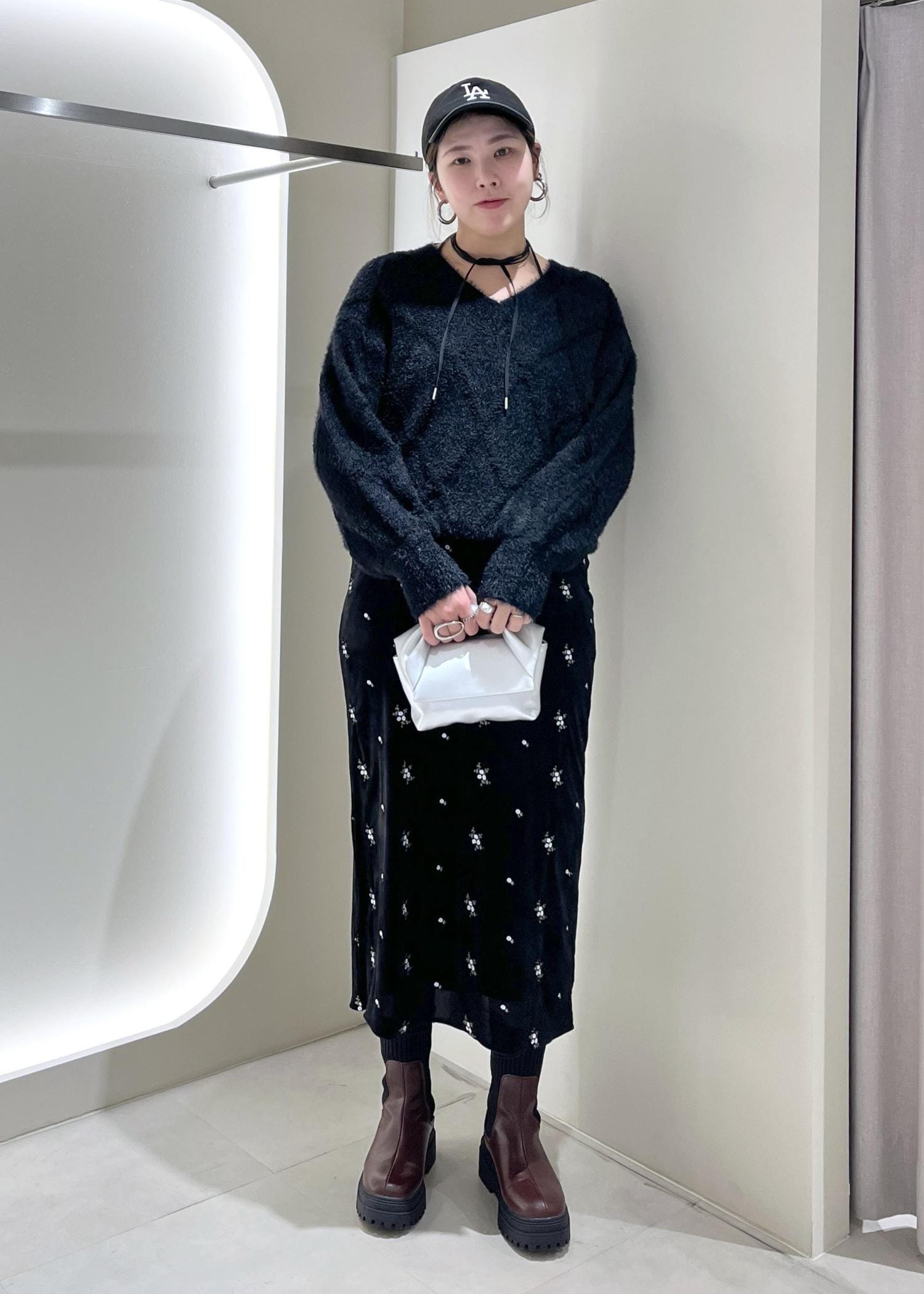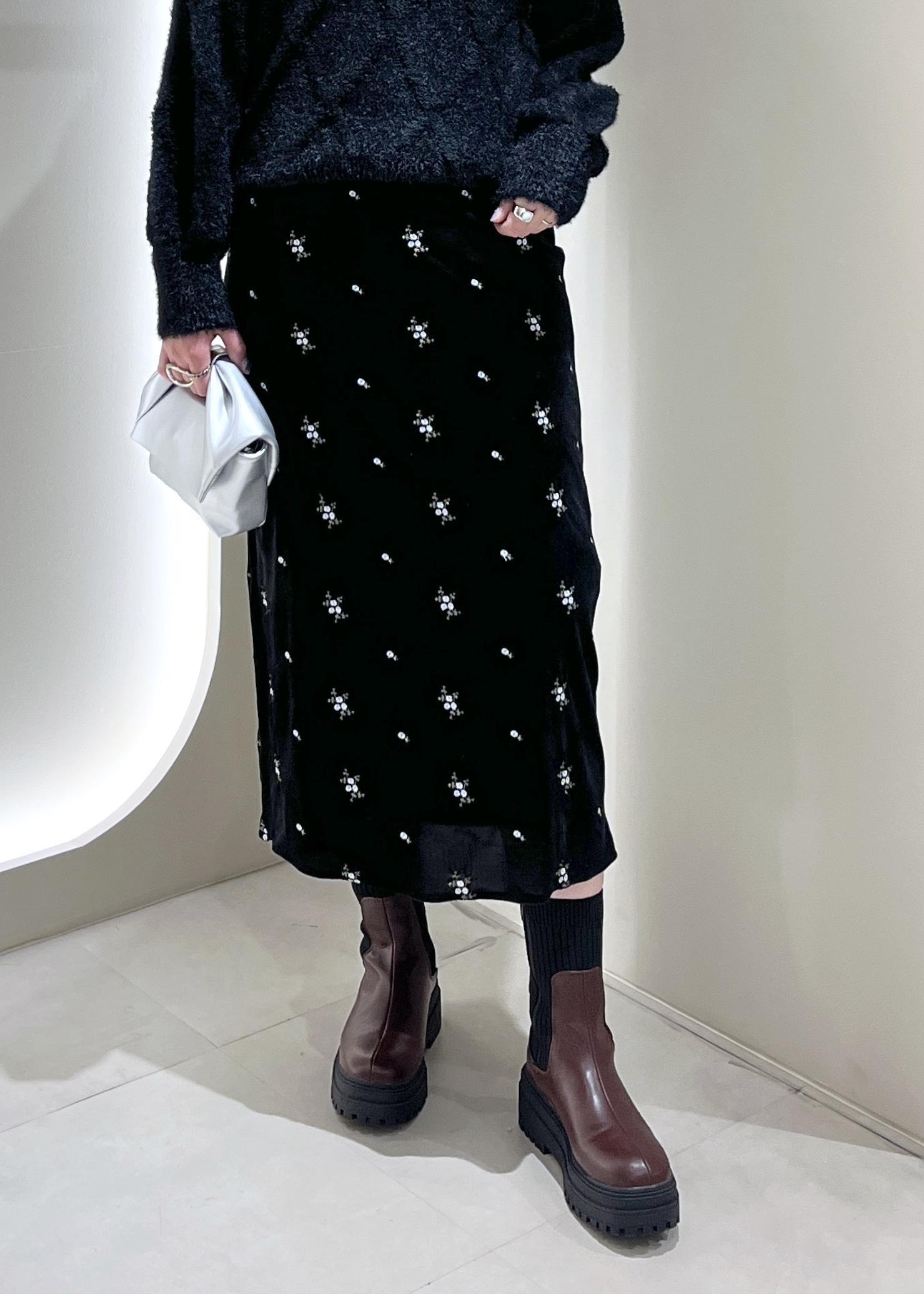 ベロアワンピとの合わせも可愛い~小花柄の刺繍も映えます!