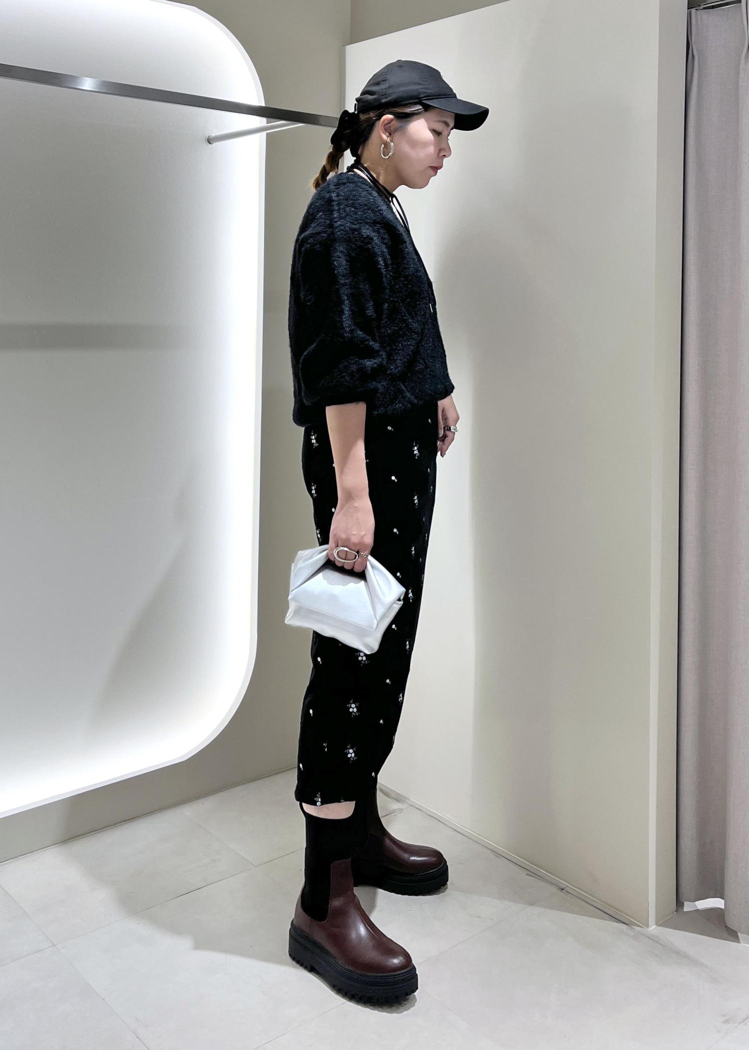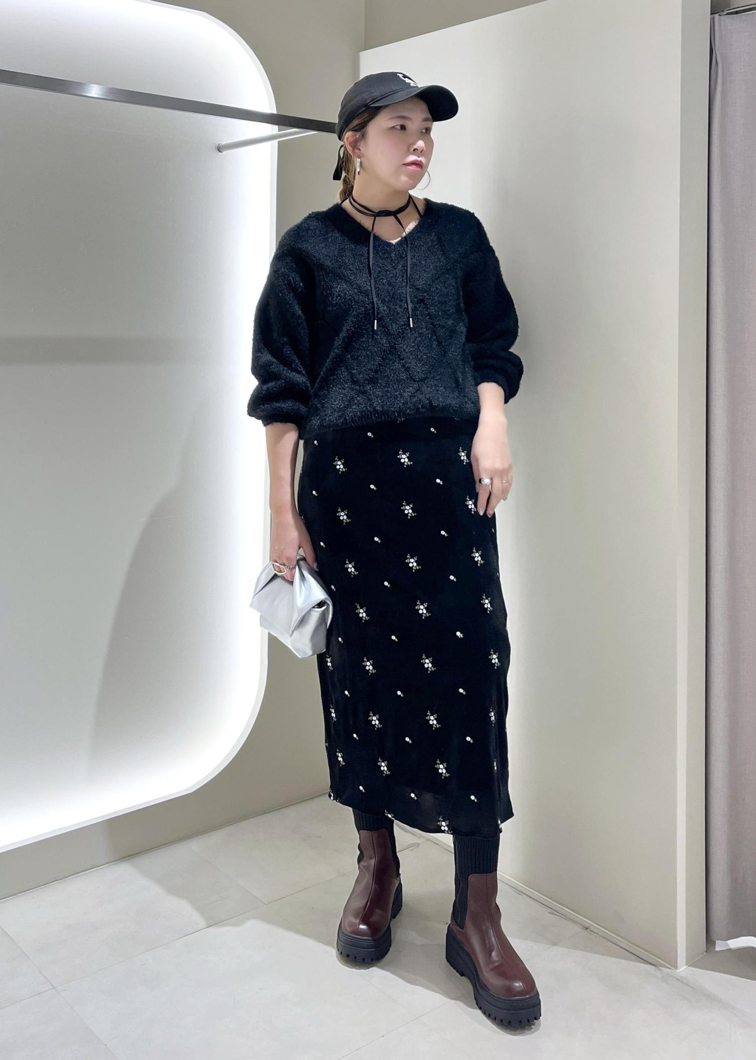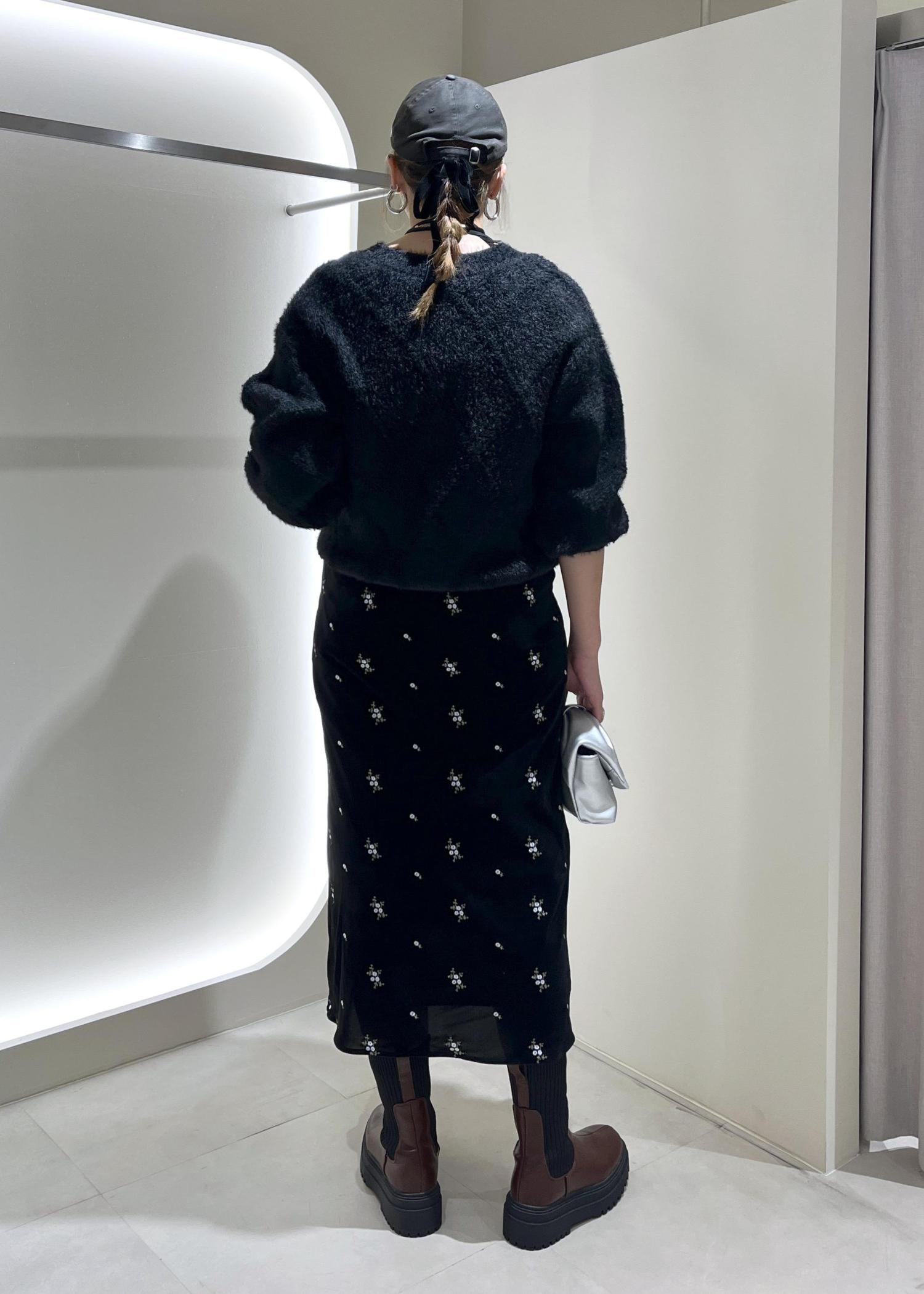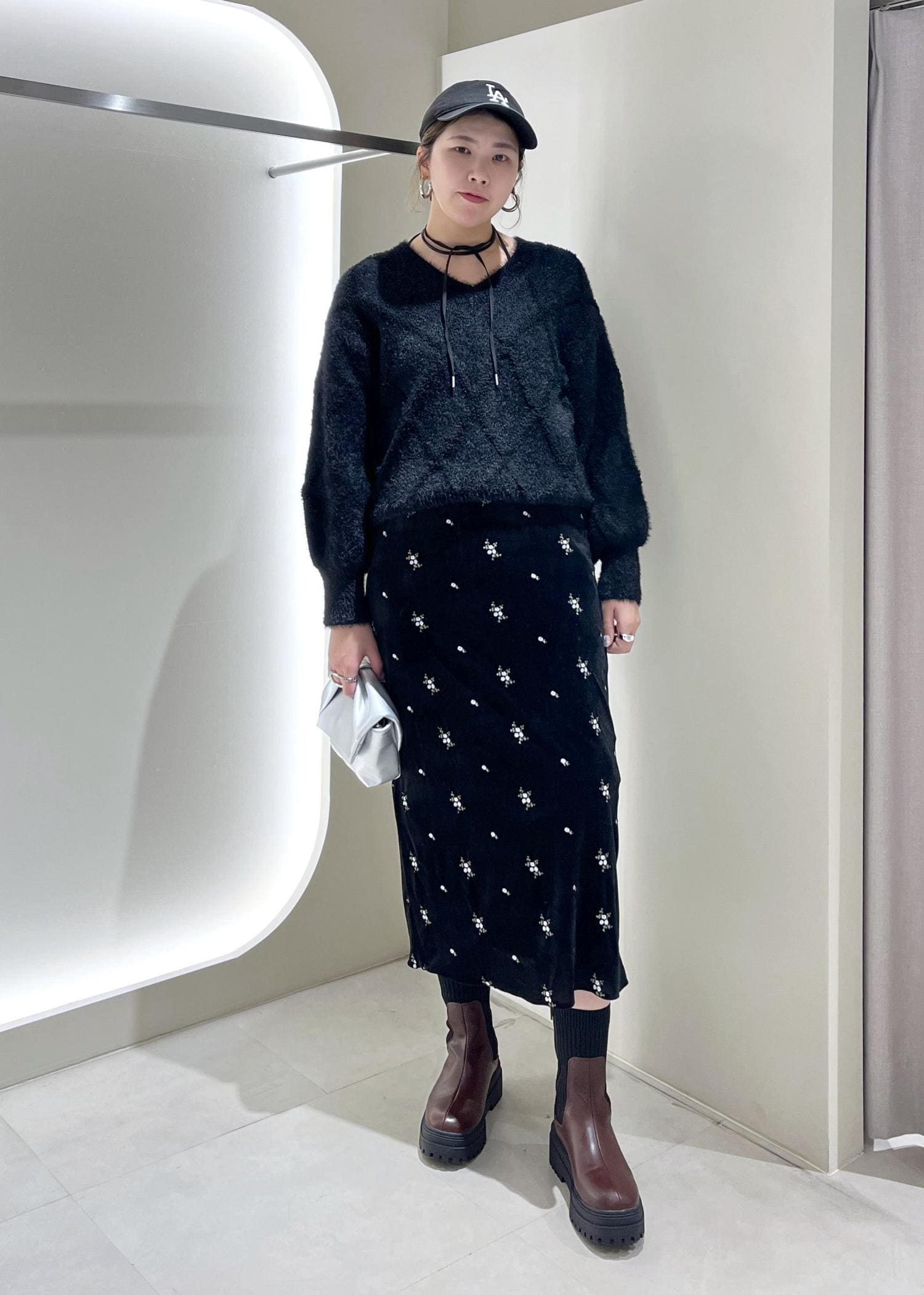 ベロアワンピとの合わせも可愛い~小花柄の刺繍も映えます!