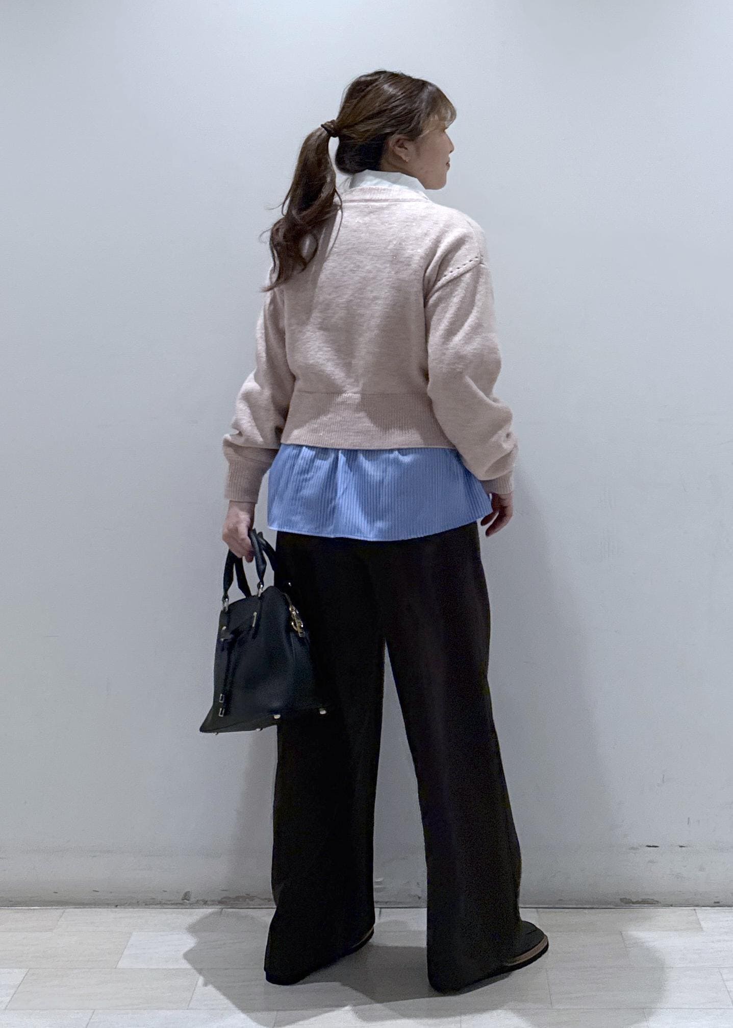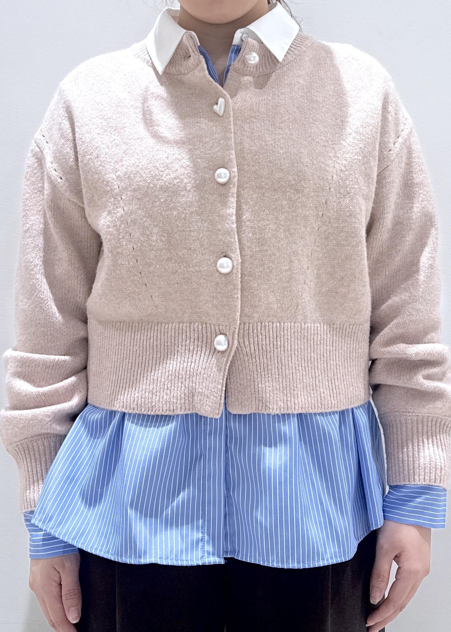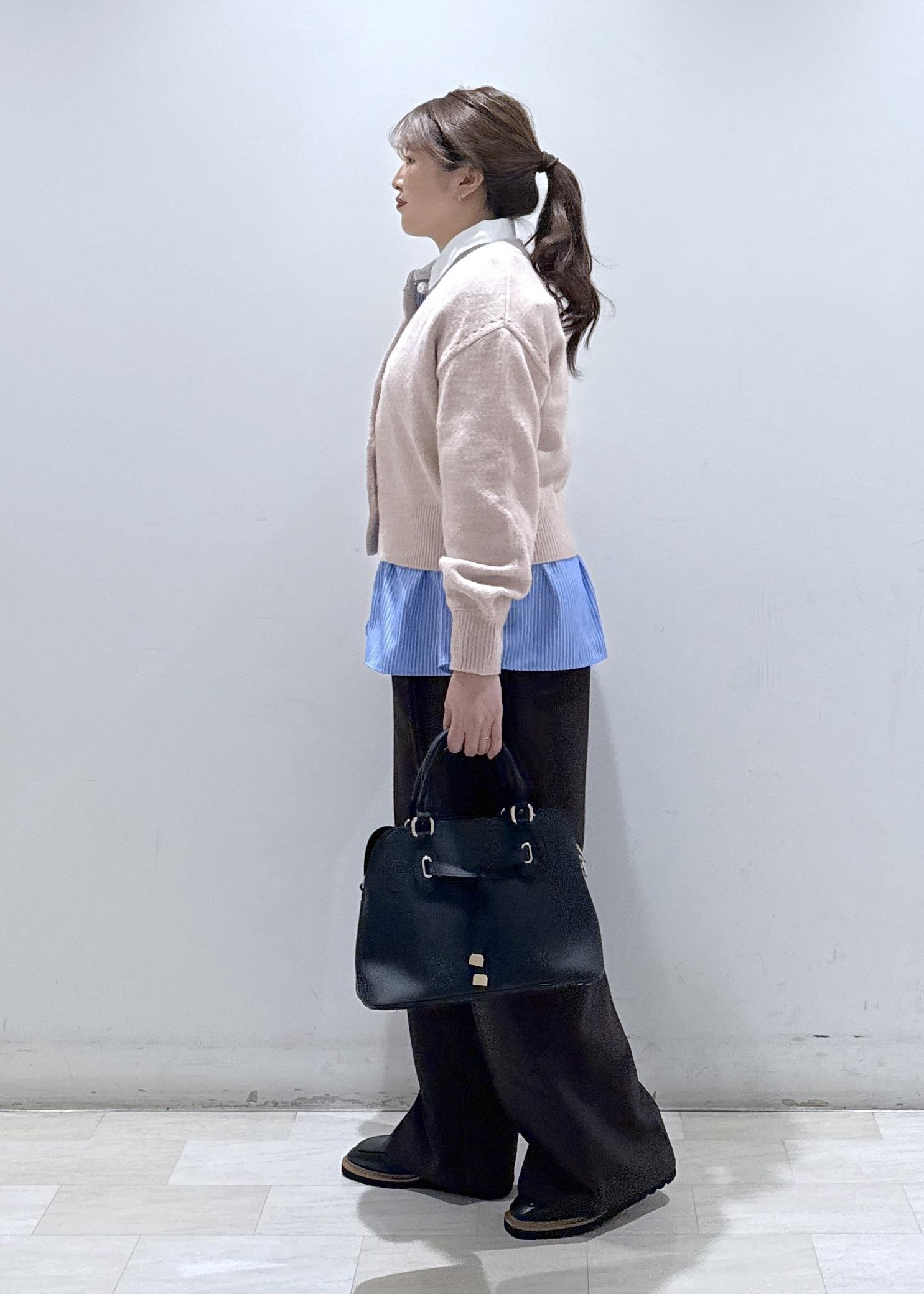 今回はVISで大人気なパールボタンカーディガンに、シャツと合わせて重ね着をしたコーディネートにしてみました。