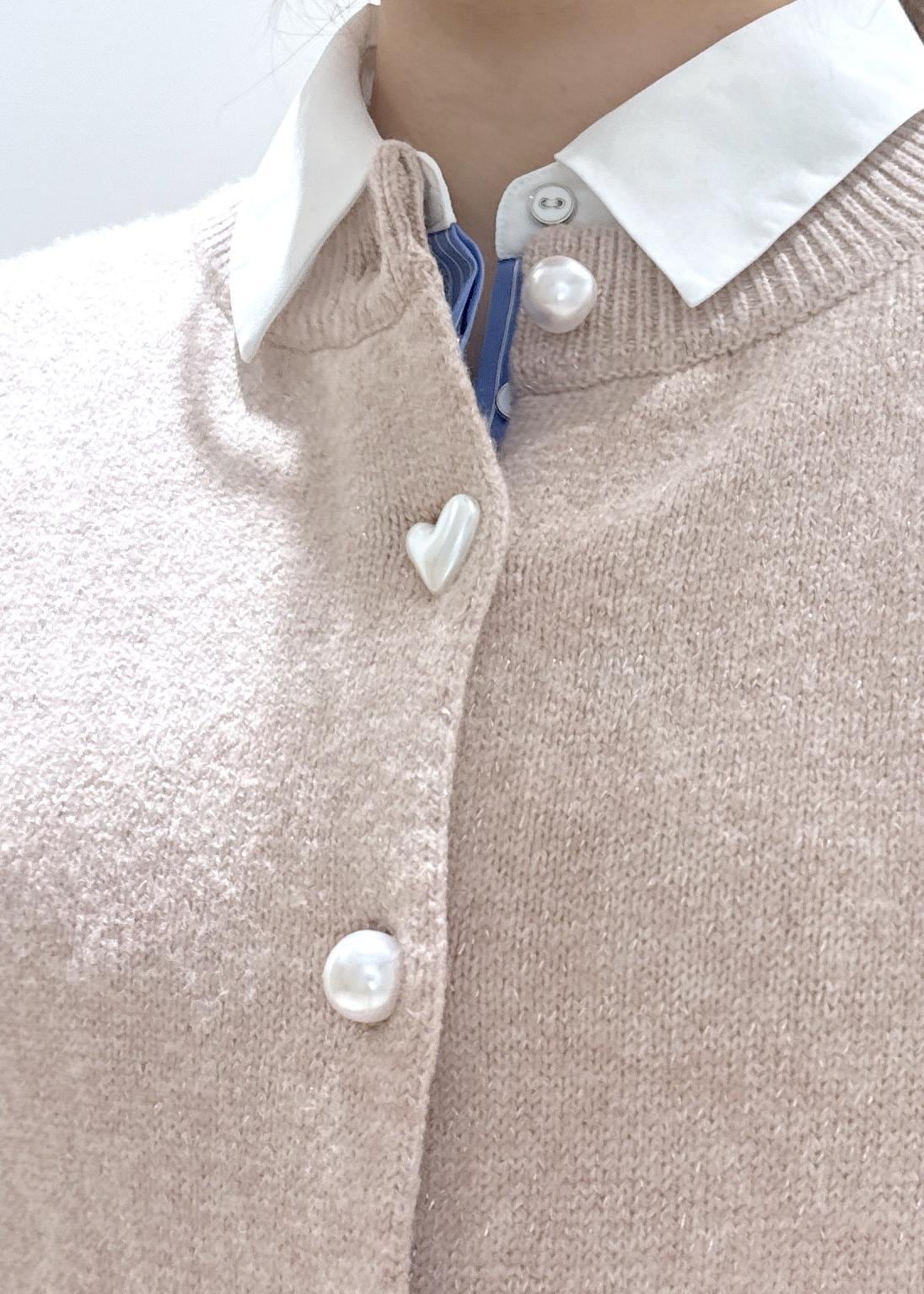 ラメ感も入ってはいますが、チクチク感もなくウール素材の暖かいカーディガンです。ピンクと言っても淡い色なので、そこまで甘すぎず着れるのでオススメです。