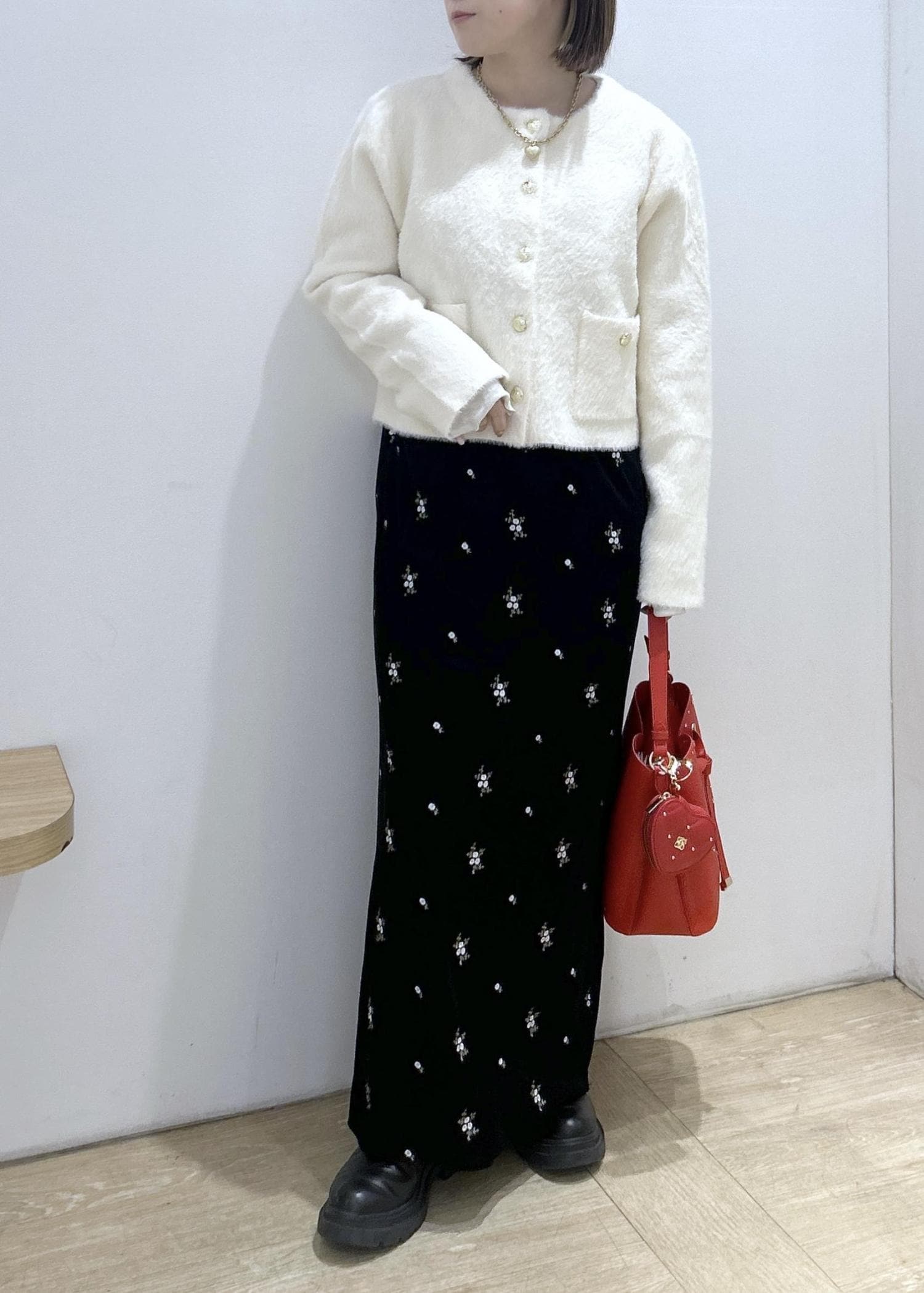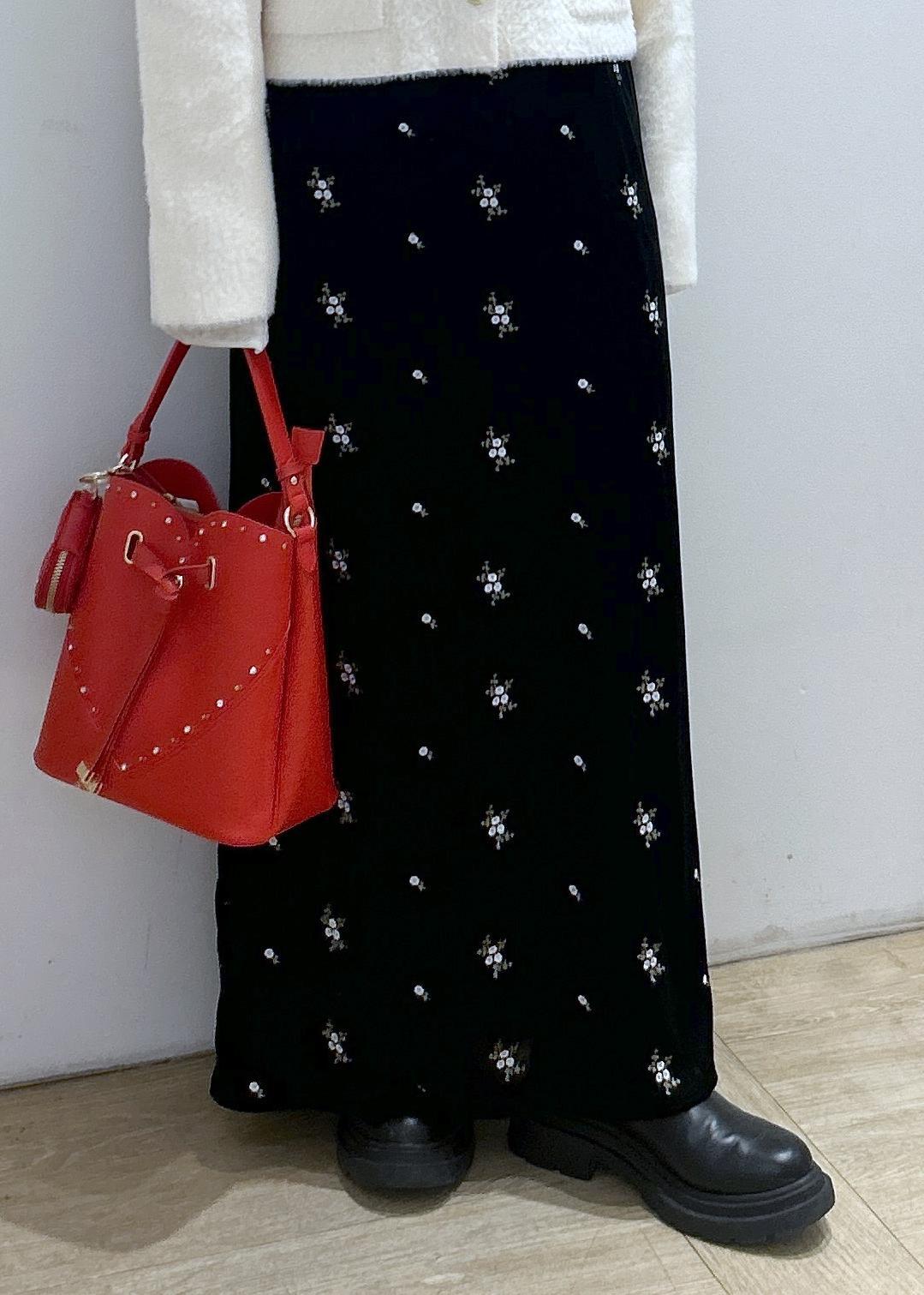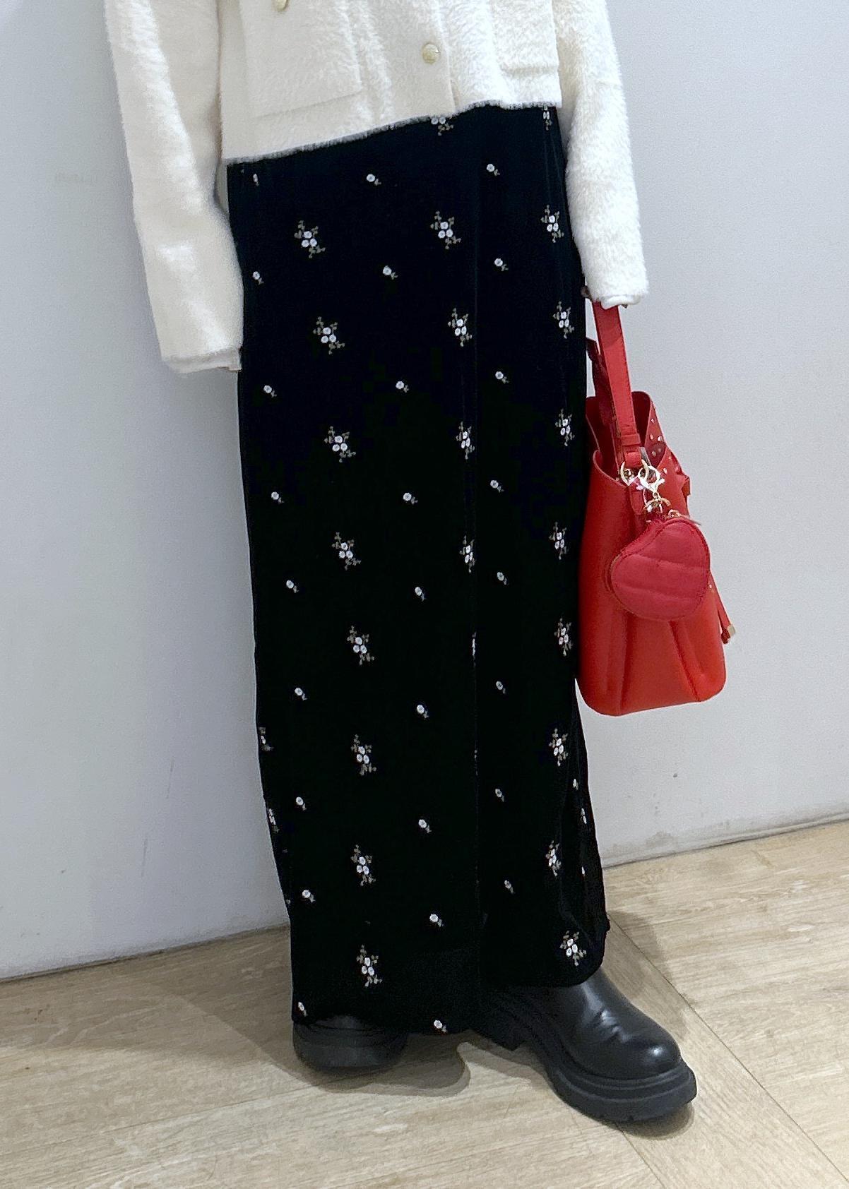 VIS刺繍アソートベロアキャミワンピース/2WAYブラック系 / F¥8,899レビュー150㎝で足首丈です。I ラインのシルエットでスタイルアップできます。ベロア素材ですが、厚みはそこまでないので、落ち間があり、シルエットがきれいです。