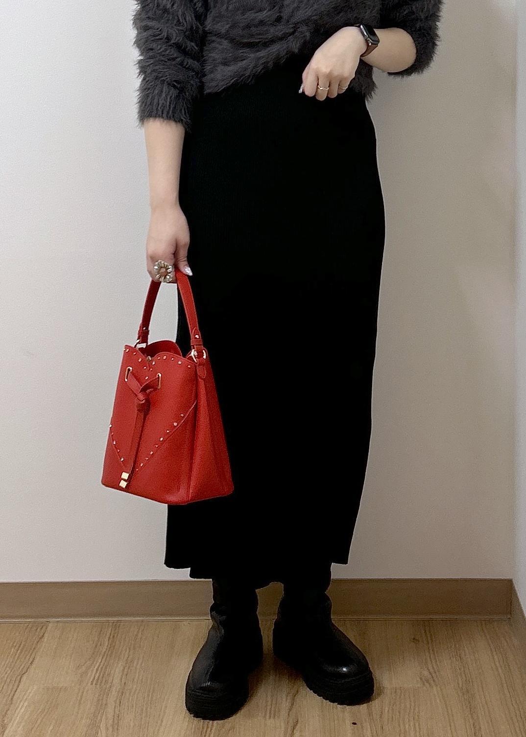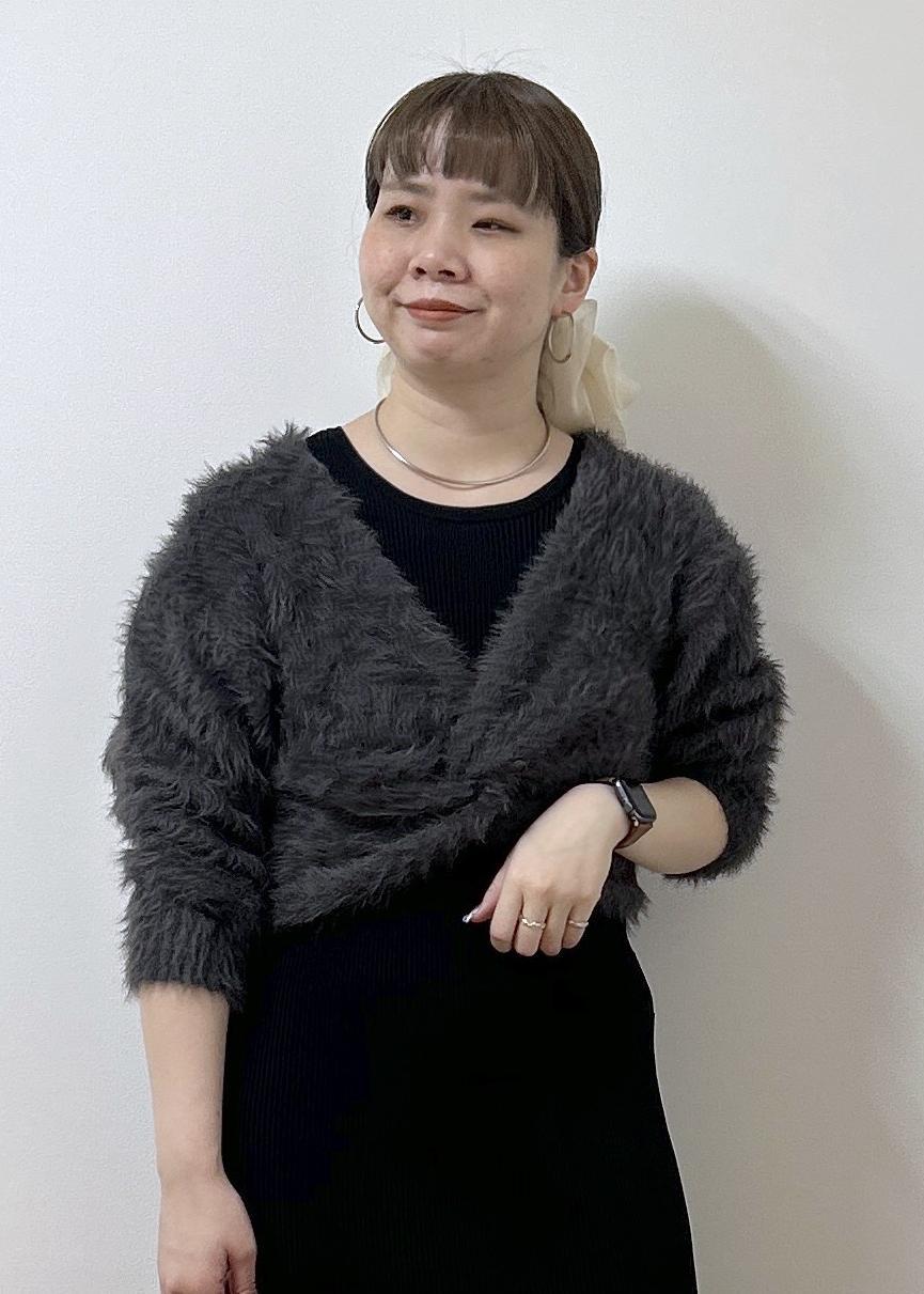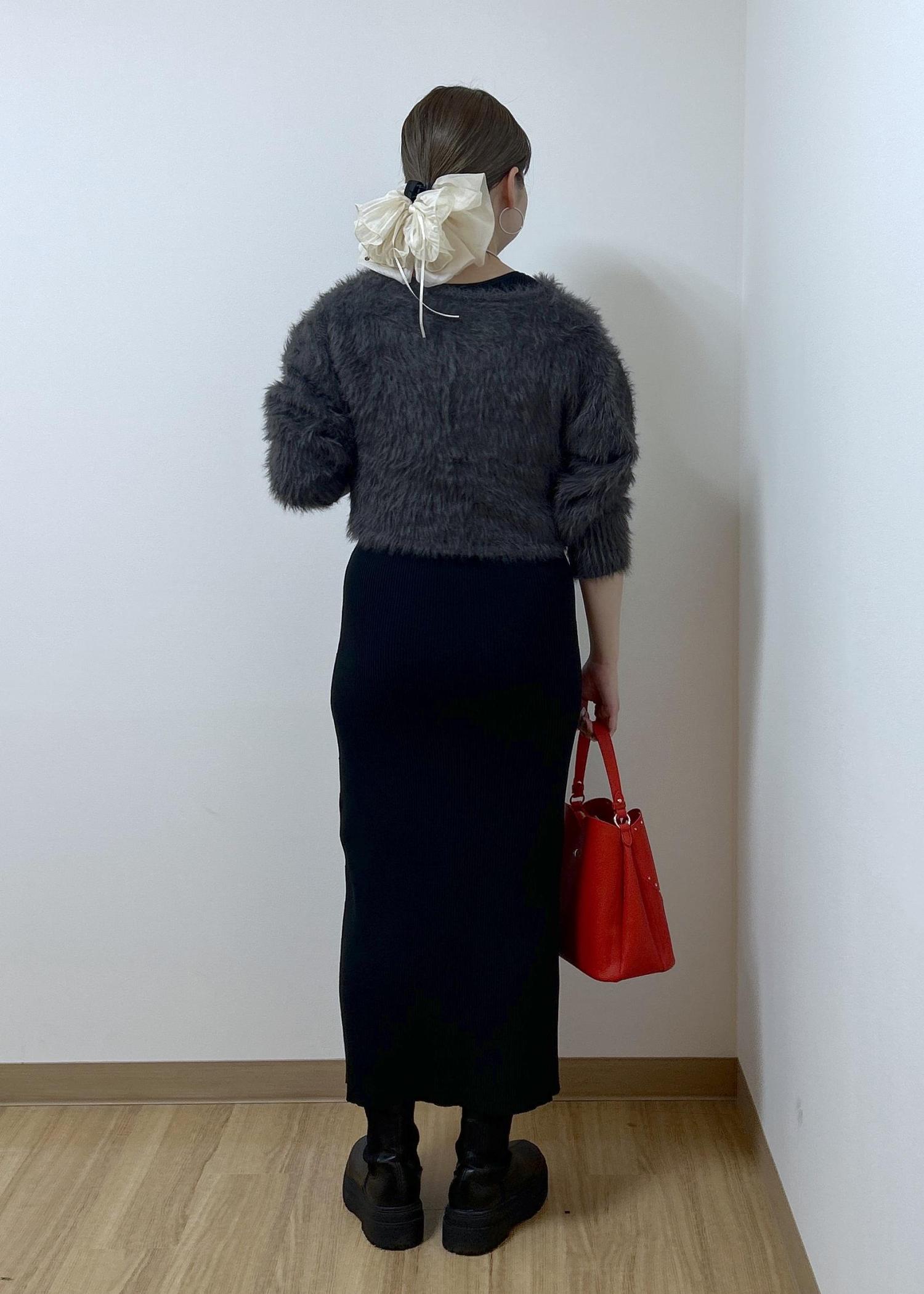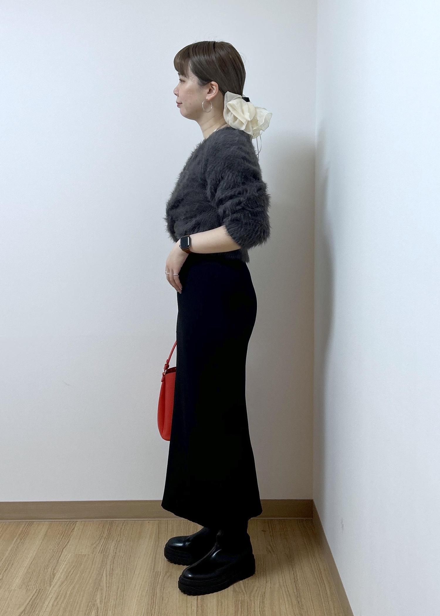 VISねじりショートトップス付きロングニットワンピース/イージーケアチャコール / F¥9,999レビュー163cmでリブワンピース部分は足首が完全に見える着丈です。